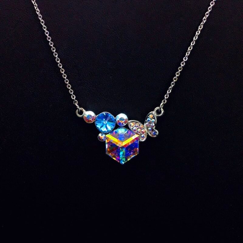 Vintage Rose Square Swarovski element crystal necklace wholesale – Minimalist Single Stone Pendant