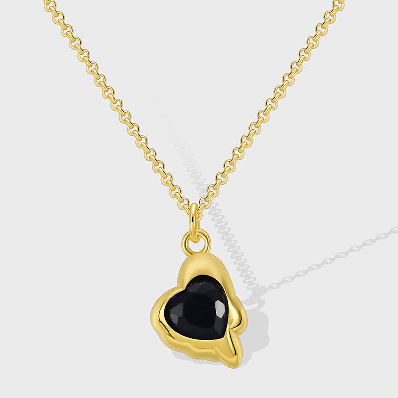 Deep blue zircon heart pendant necklace for women, vintage-style irregular shape charm, 18K gold plated, wholesale fashion jewelry accessory