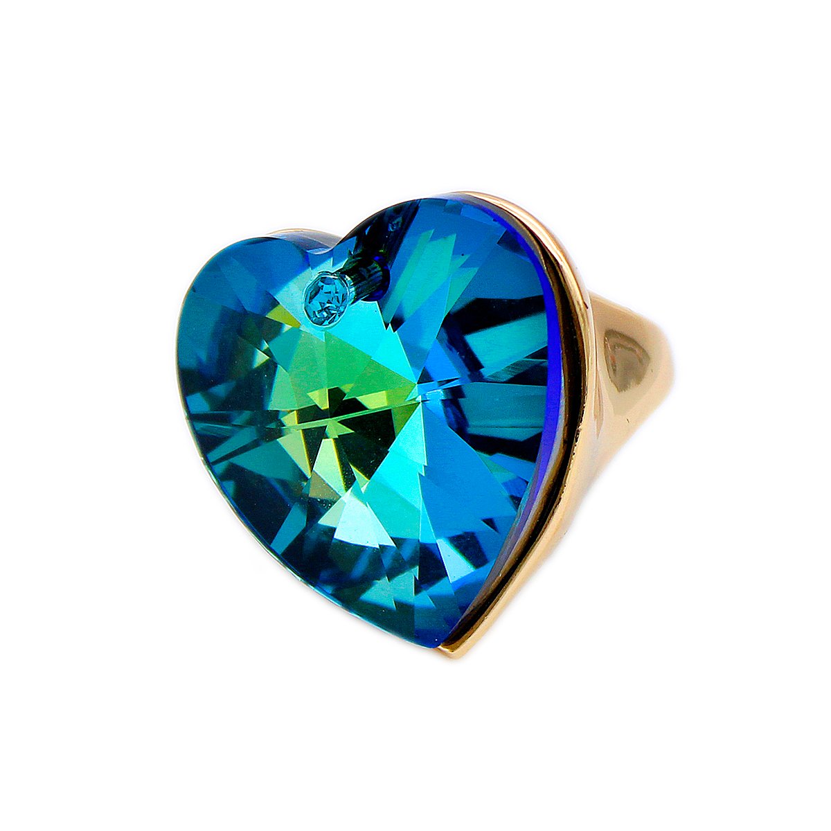 Make a bold statement with our Wholesale Blue Swarovski Element Ring. This eye-catching cocktail ring features a large, faceted heart-shaped blue crystal (utilizing high-quality crystals – Swarovski Elements) set atop a simple, polished brass band. The minimalist setting allows the crystal’s intense color and brilliant cut to take center stage.