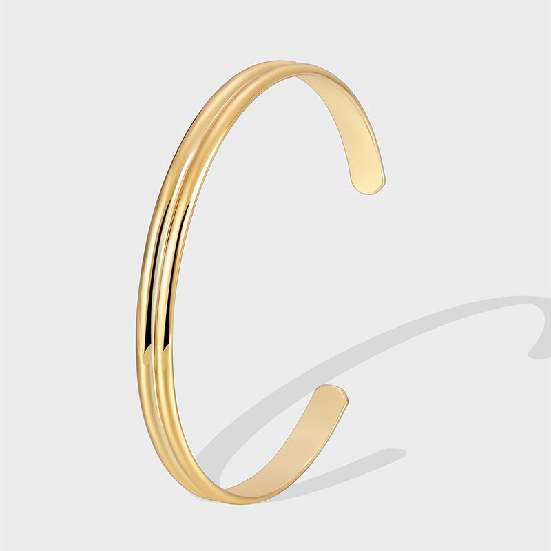Discover our Bulk Concave Cuff Bracelet. This minimalist, French-style open cuff design, crafted from 14K gold plated copper, features a unique concave U shape. This chic and adjustable bracelet adds a touch of modern elegance to any outfit.