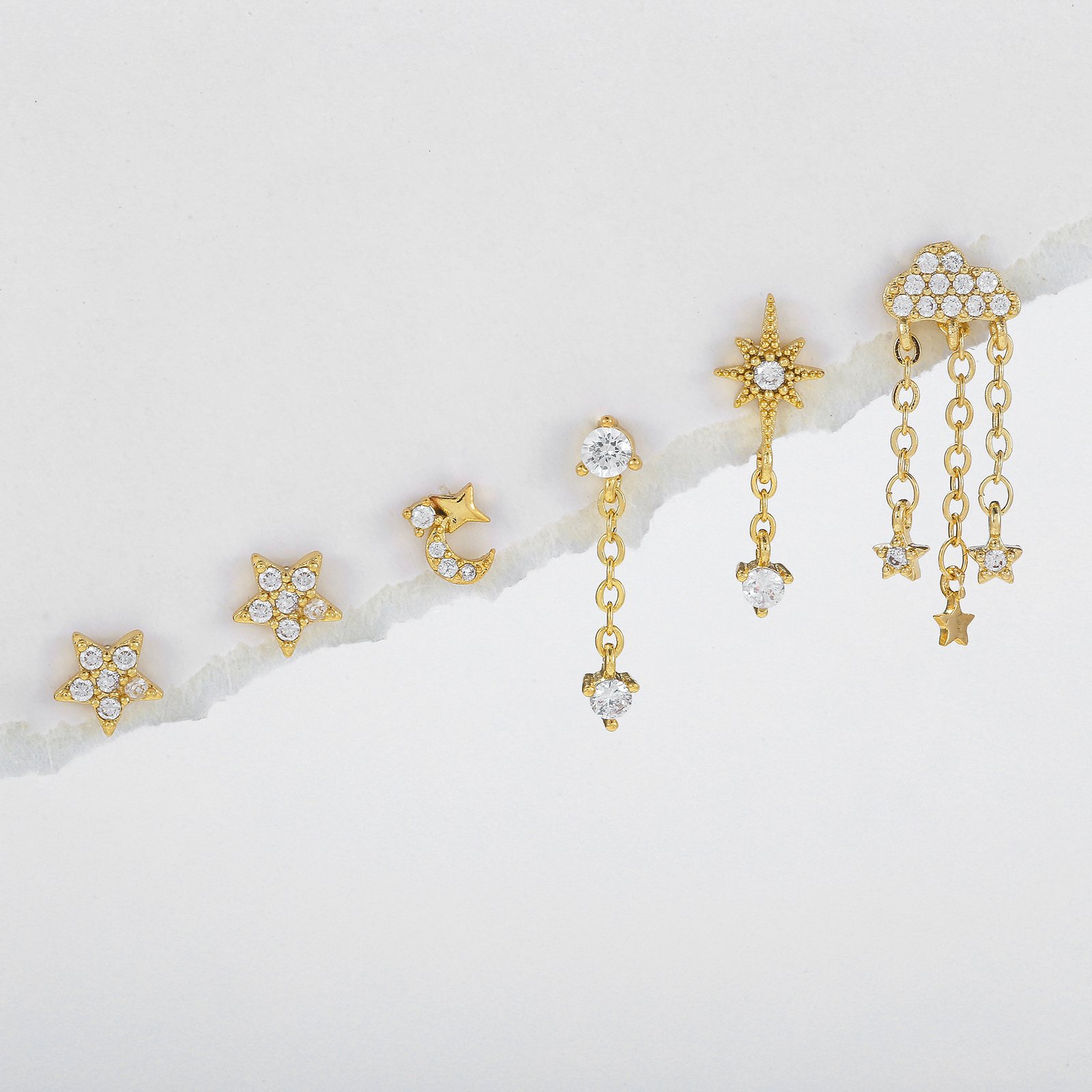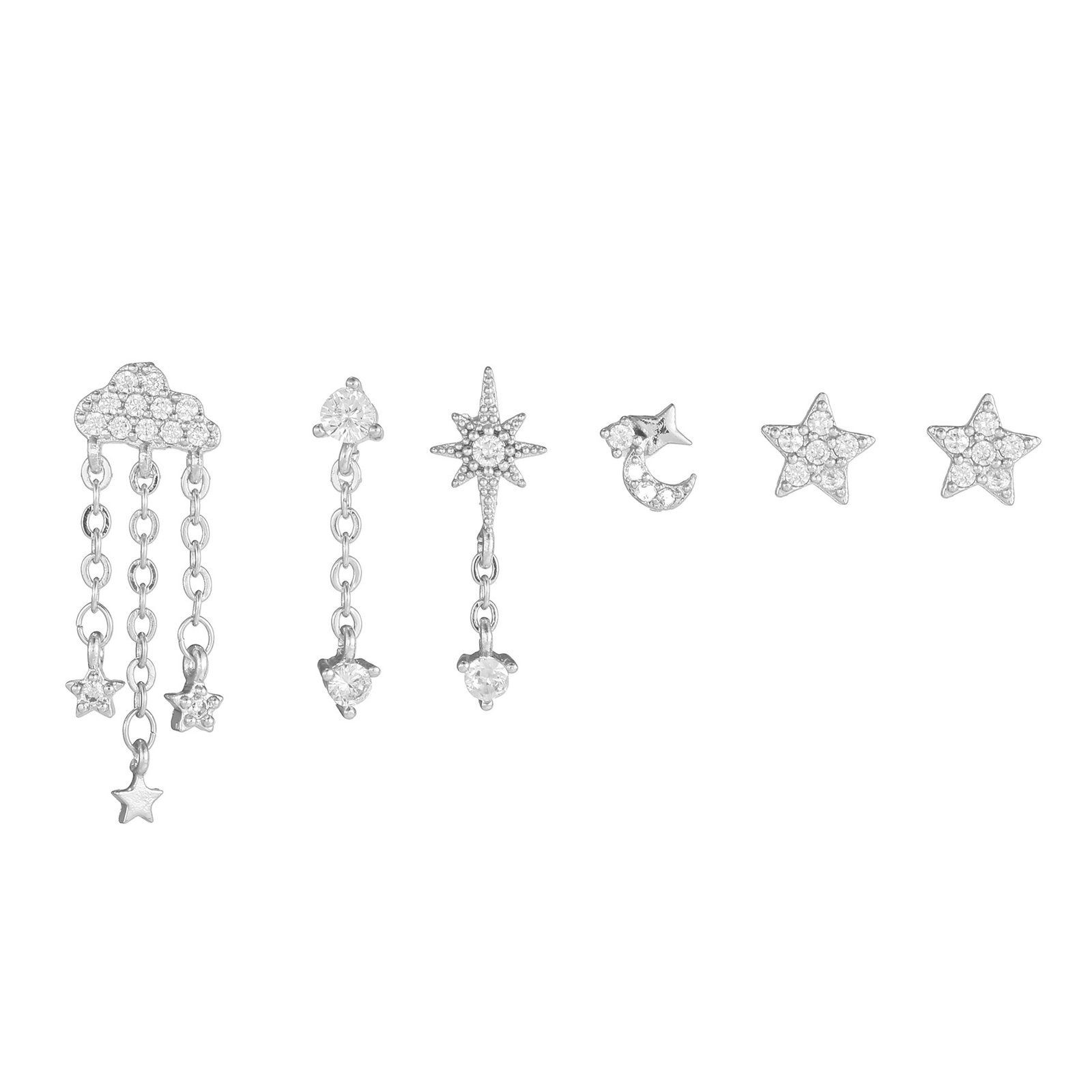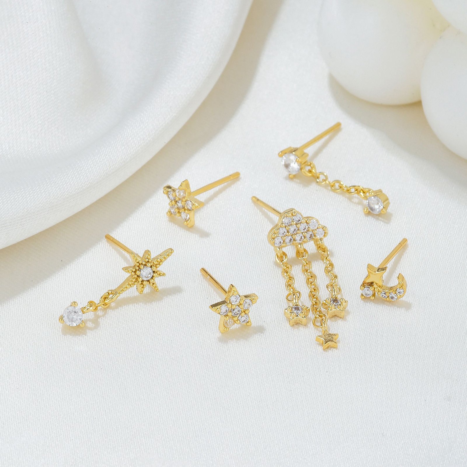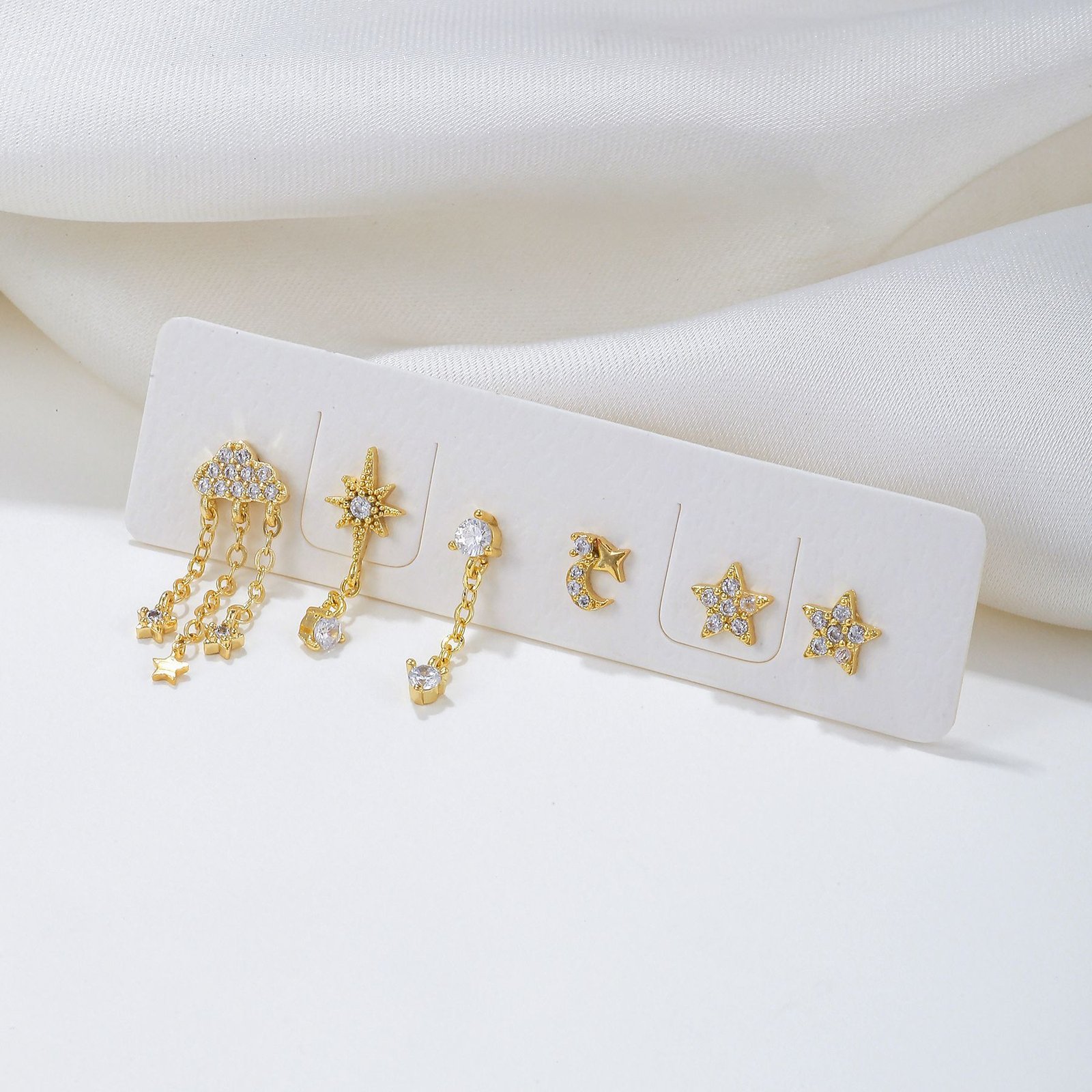 CZ cloud star moon tassel earrings set wholesale china factory