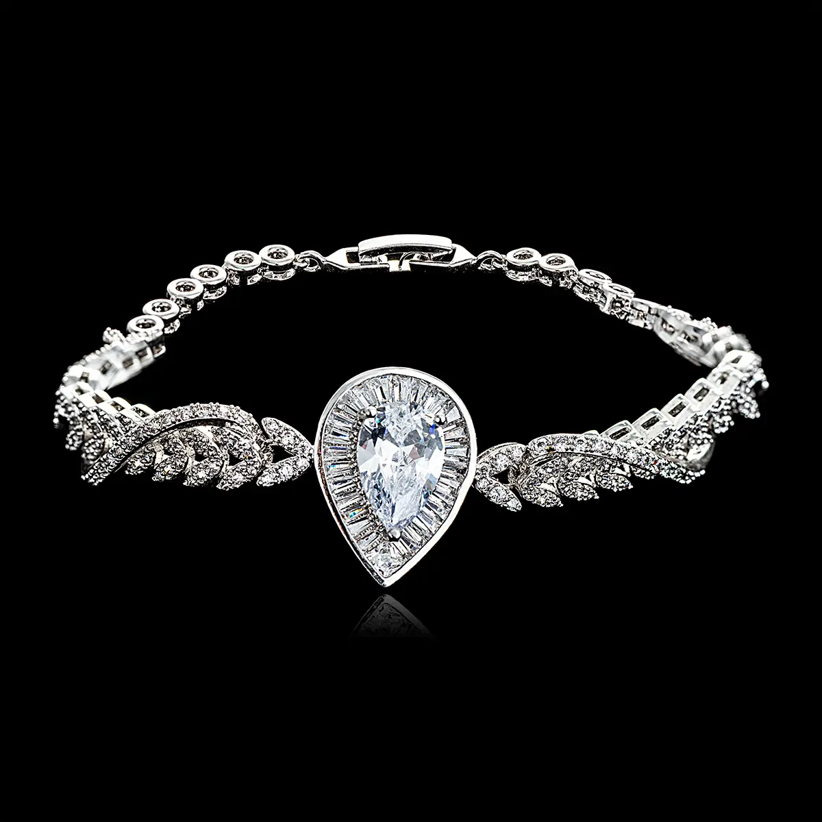 Elegant Pear Halo CZ Bracelet – Platinum Plated Cubic Zirconia Statement Bracelet