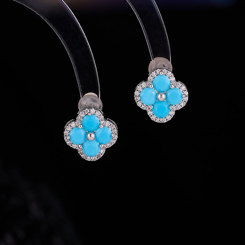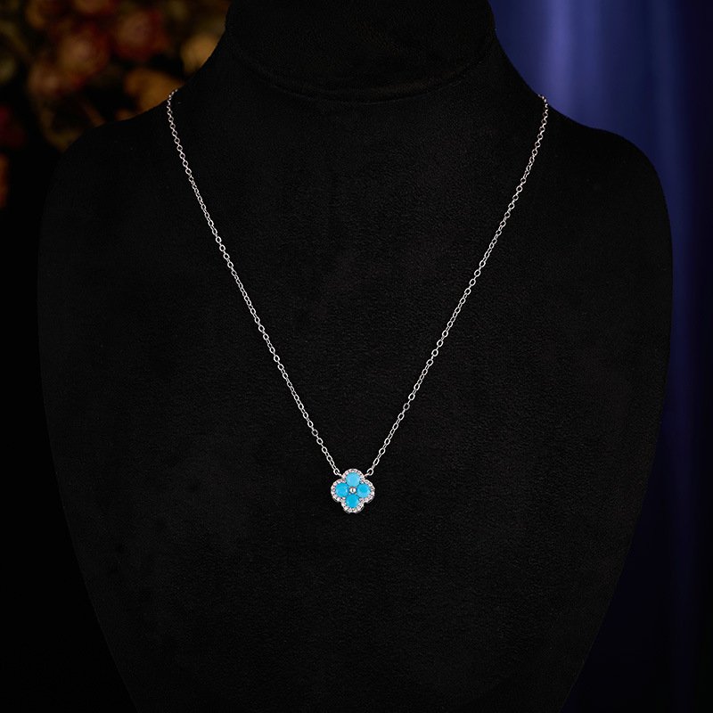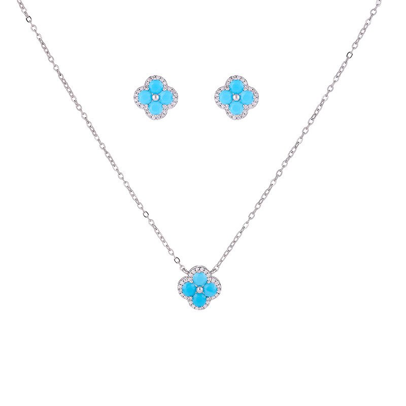 Lucky Clover Turquoise Blue Set | Earrings Necklace Wholesale