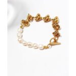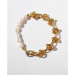 This bracelet redefines elegance with a quality Knotted thick chain and freshwater pearl with 18K gold plating, offering a unique, high-end option for wholesale collections.