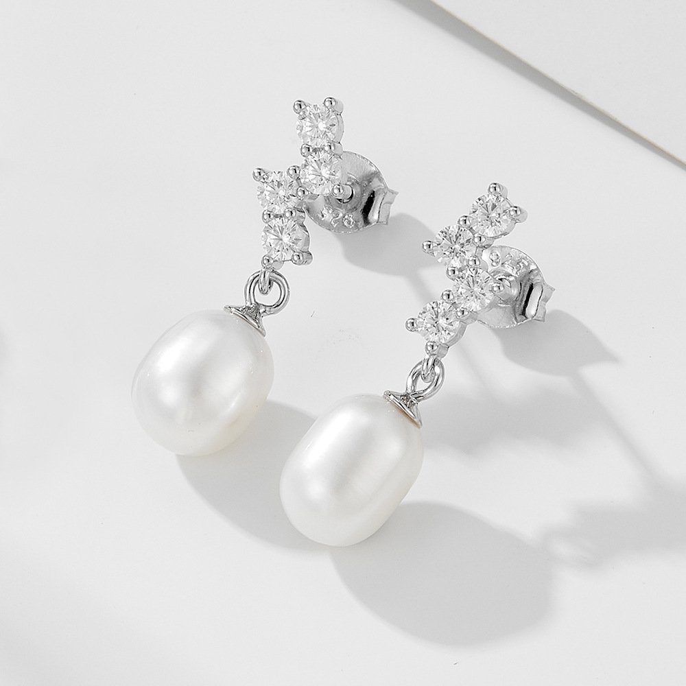 Elevate your inventory with our Wholesale French Light Luxury Natural Pearl drop Earrings. These exquisite new earrings feature a minimalist design, adorned with natural freshwater pearls. They are crafted from elegant S925 sterling silver and sparkle with zircons. Blending Japanese and Korean style sophistication, they offer two plating options: 18K gold and platinum. These earrings exude a high-end and versatile charm, perfect for modern women. At junejewelry.com, we provide original, unique products. Our factory-direct pricing ensures excellent value. It is also cheap. We guarantee high quality. Enjoy free shipping. Attract more traffic. Significantly boost sales on your independent fashion jewelry wholesale website.