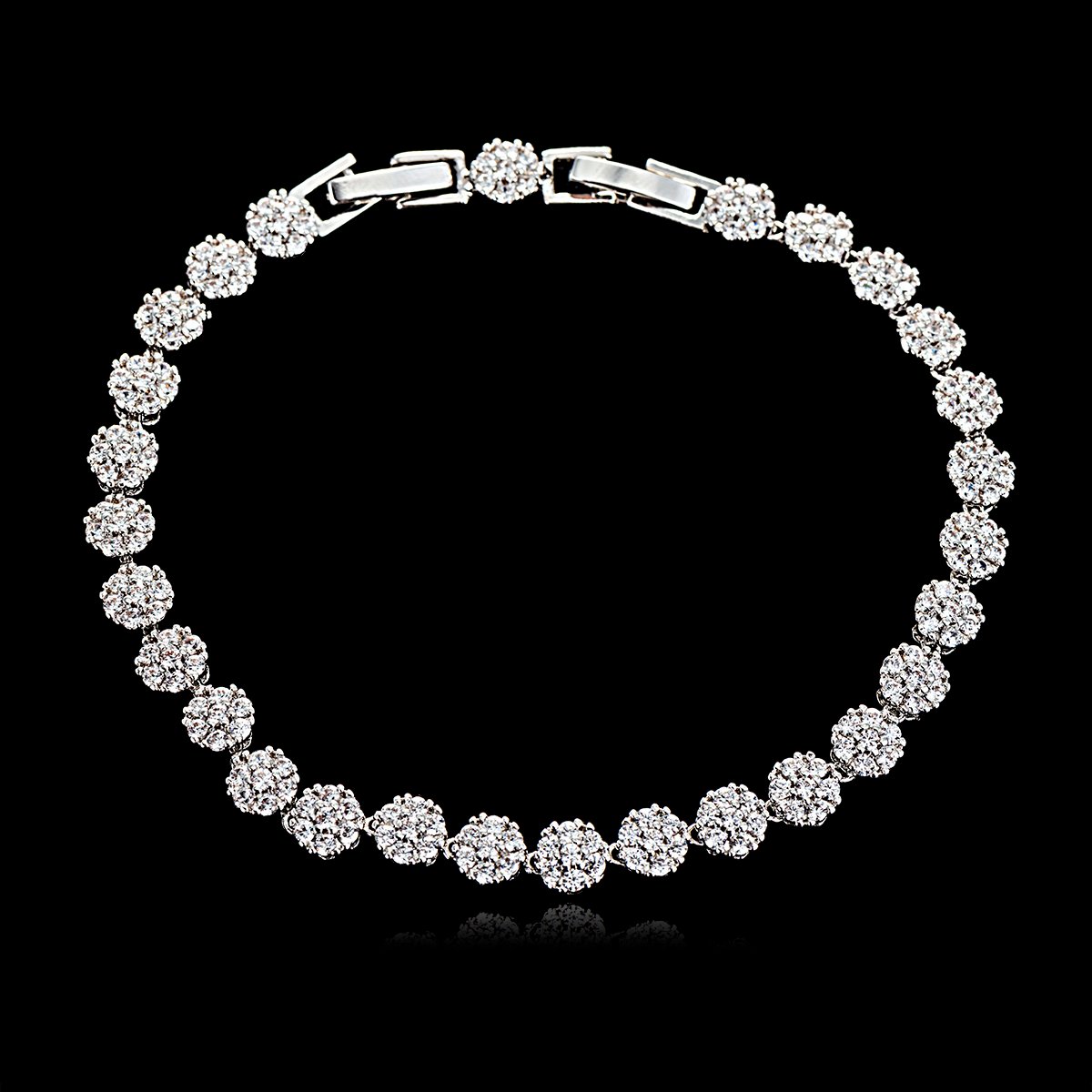 Home Bracelets Tennis Bracelet Sparkling Pave Cluster Cubic Zirconia Bracelet in Platinum Plated Brass