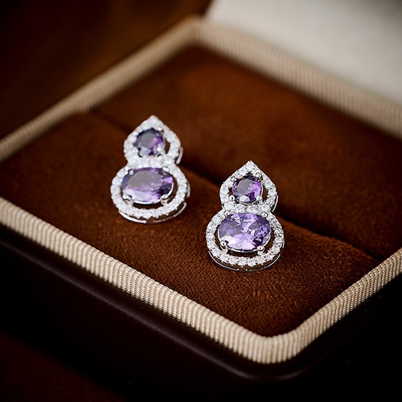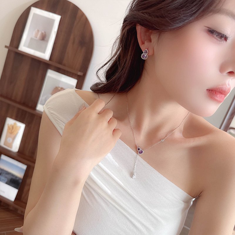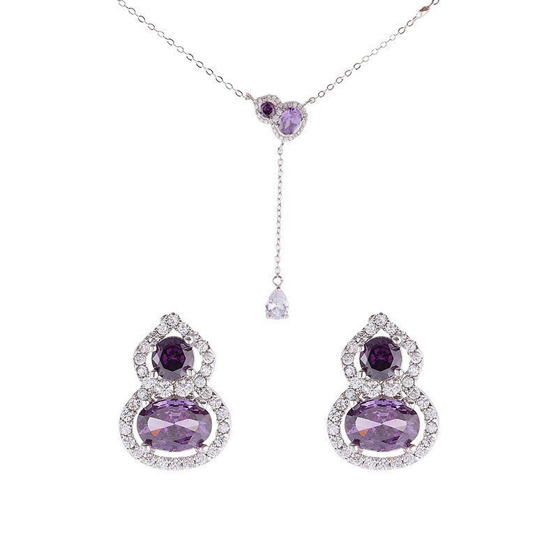 Purple Zircon Gourd Prosperity Set | White Gold Necklace Earrings
