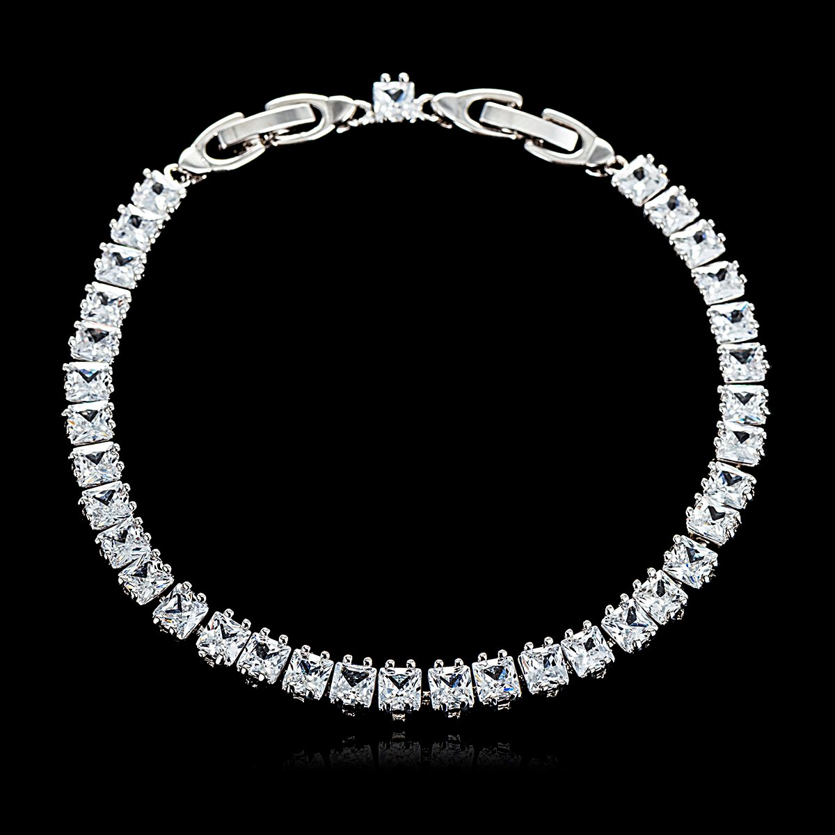Radiant Baguette CZ Tennis Bracelet – Platinum Plated Cubic Zirconia