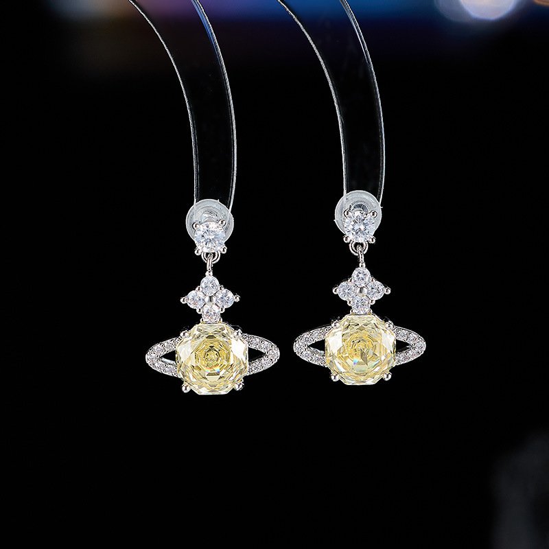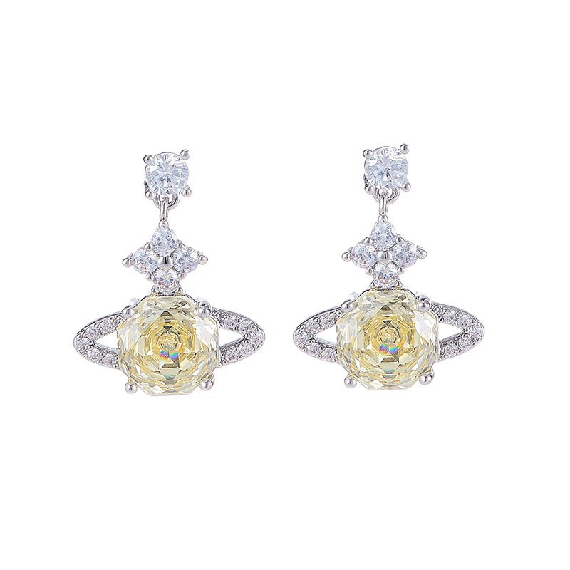 Rose Cut Zircon Saturn Jewelry Set | High-End White Gold Plated