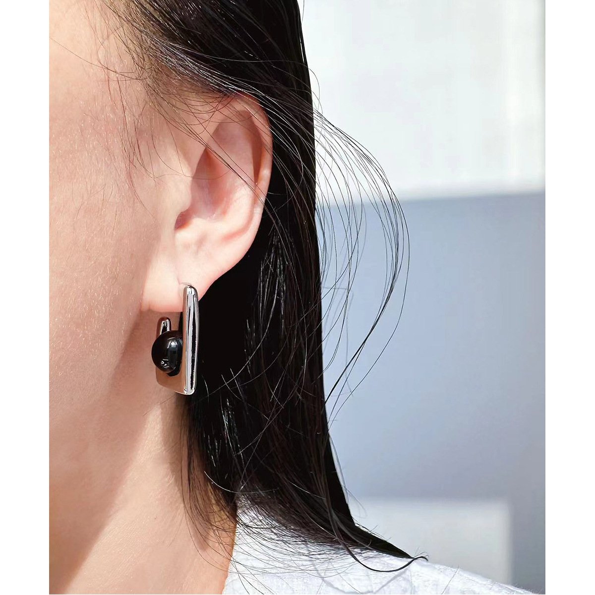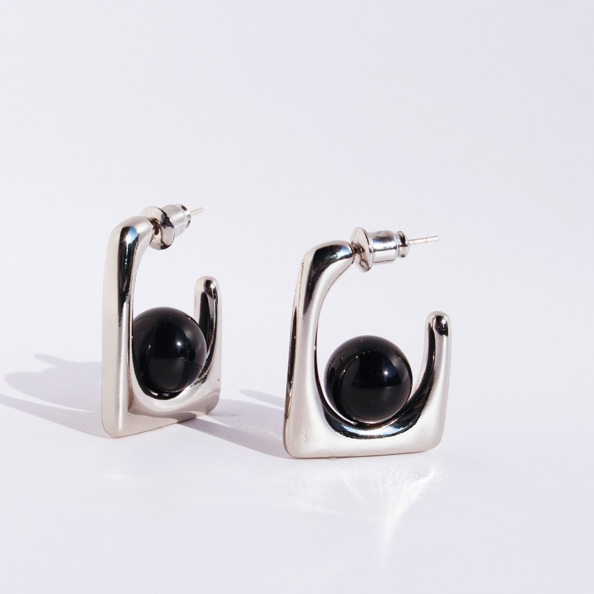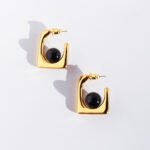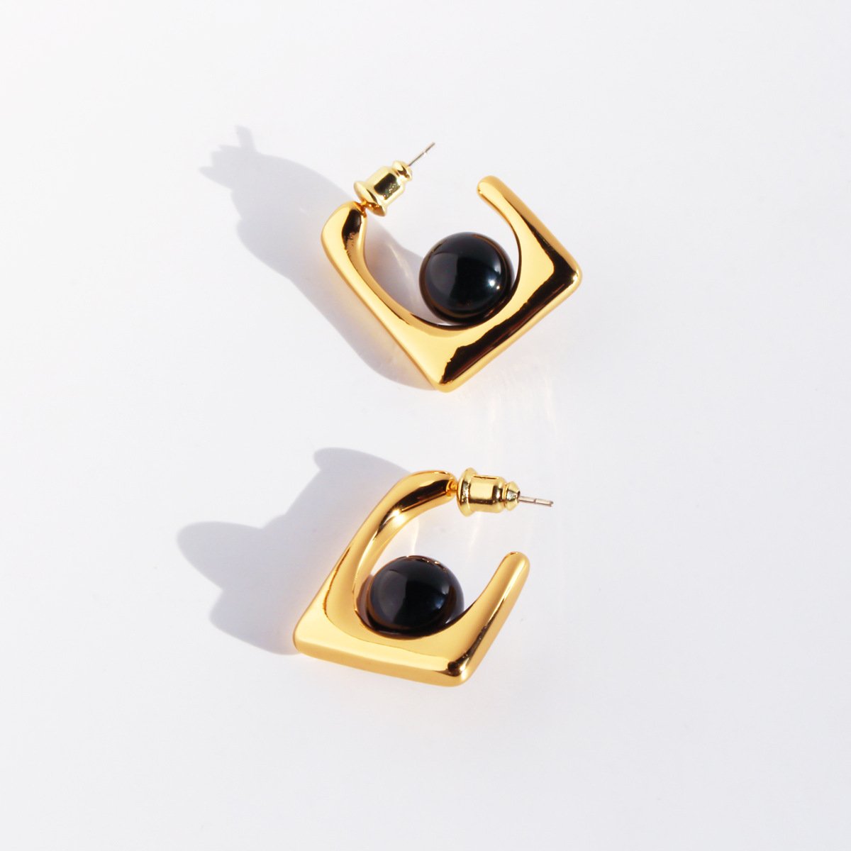 Niche high-end black natural agate geometric square earrings ,featuring copper bases with 18K gold and platinum plating, perfect for boutique inventories.