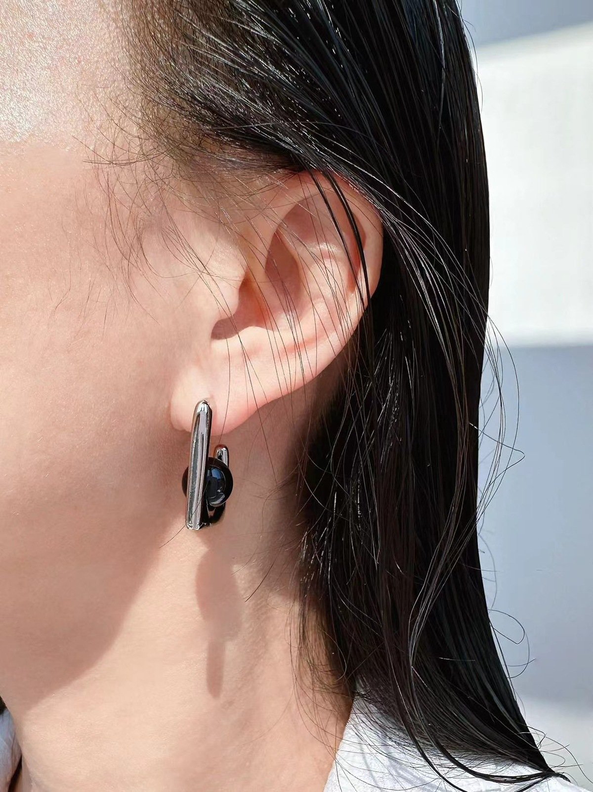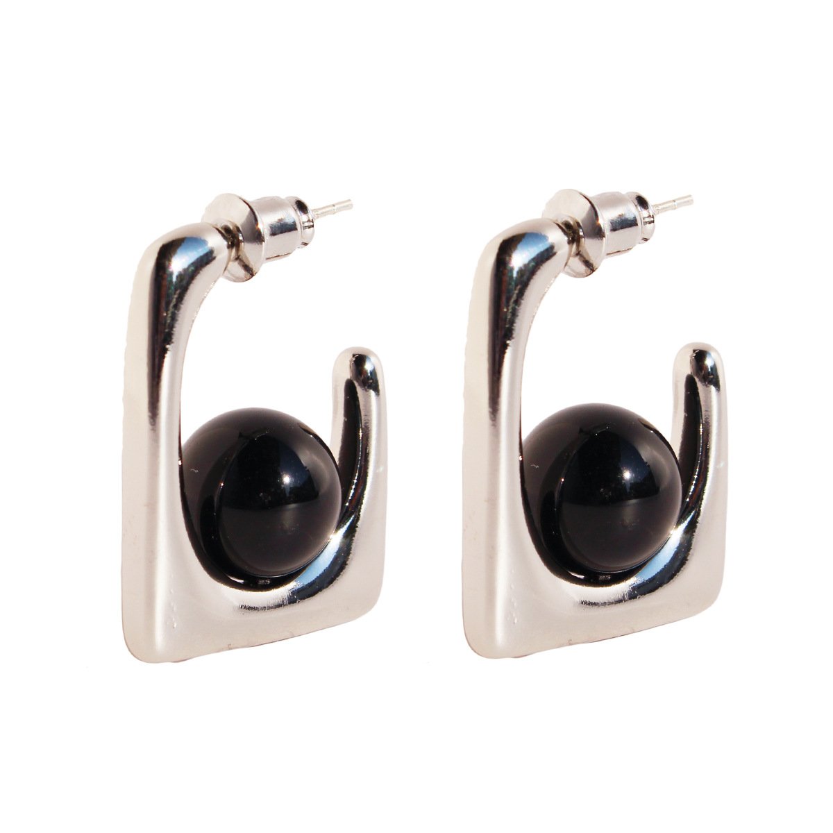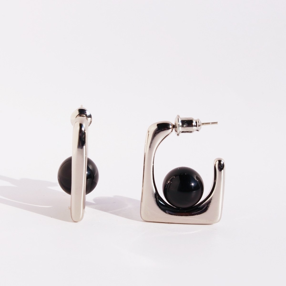 Niche high-end black natural agate geometric square earrings ,featuring copper bases with 18K gold and platinum plating, perfect for boutique inventories.