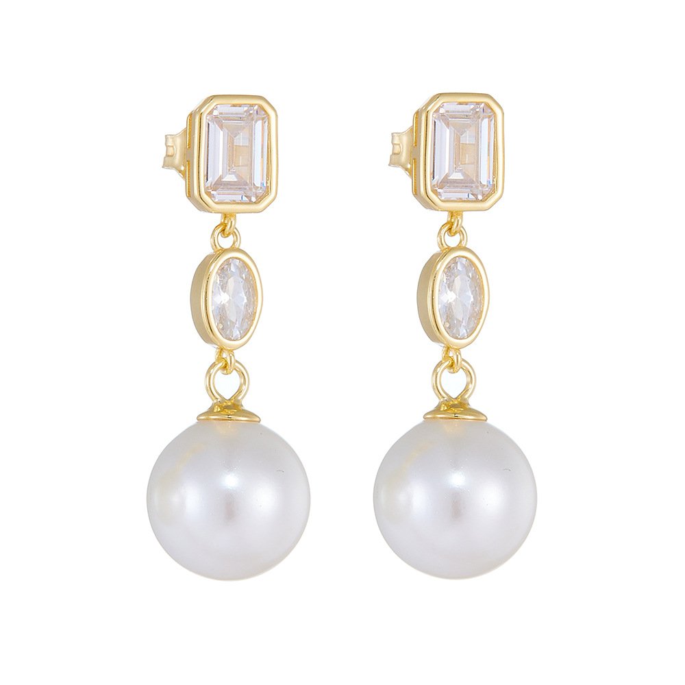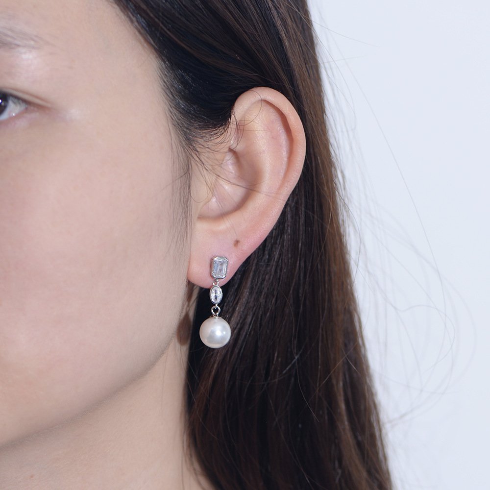 Add timeless charm to your wholesale jewelry collection with our Sterling Silver Pearl Drop Earrings, featuring a modern long-line silhouette with geometric zircon accents. These elegant S925 earrings combine high-shine shell pearls and minimalist square-cut stones for a refined yet fashionable look. Ideal for office wear, evenings out, or upscale gifting, they cater to customers seeking versatile sophistication. Plated in your choice of 18K gold or platinum, these drop earrings are hypoallergenic and tarnish-resistant. Perfect for boutique owners, fashion retailers, and cross-border sellers. Shop now at JuneJewelry.com with factory pricing and free global shipping.