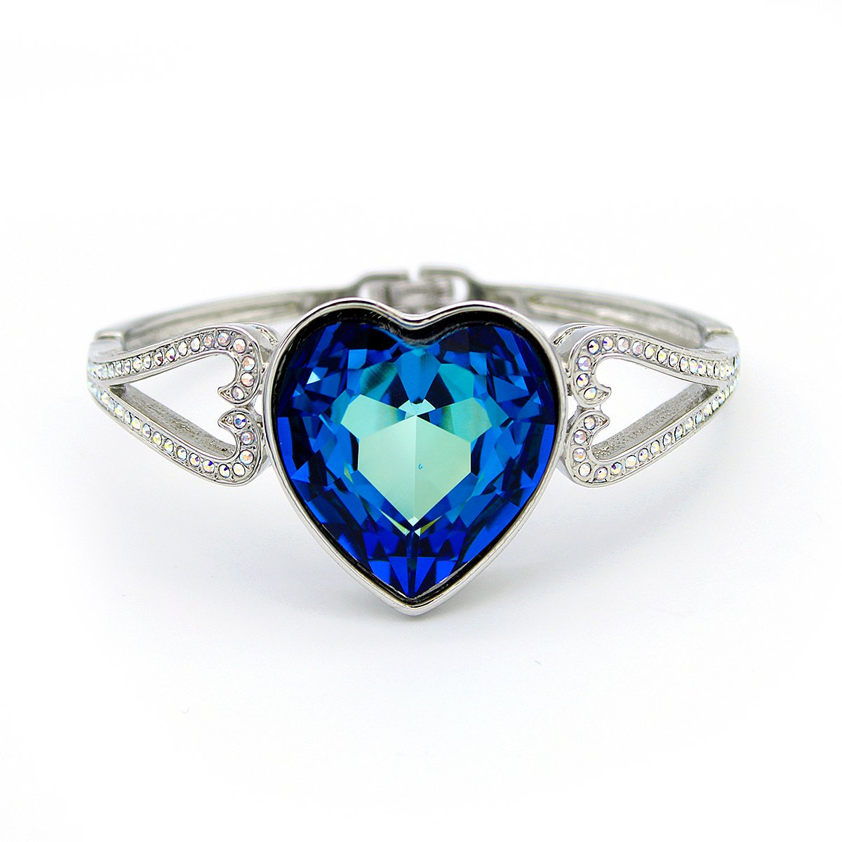Swarovski Element Heart Bangle | Sleek Crystal Design