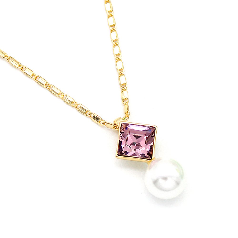 Swarovski element crystal pendant necklace wholesale – Square Cut & Pearl