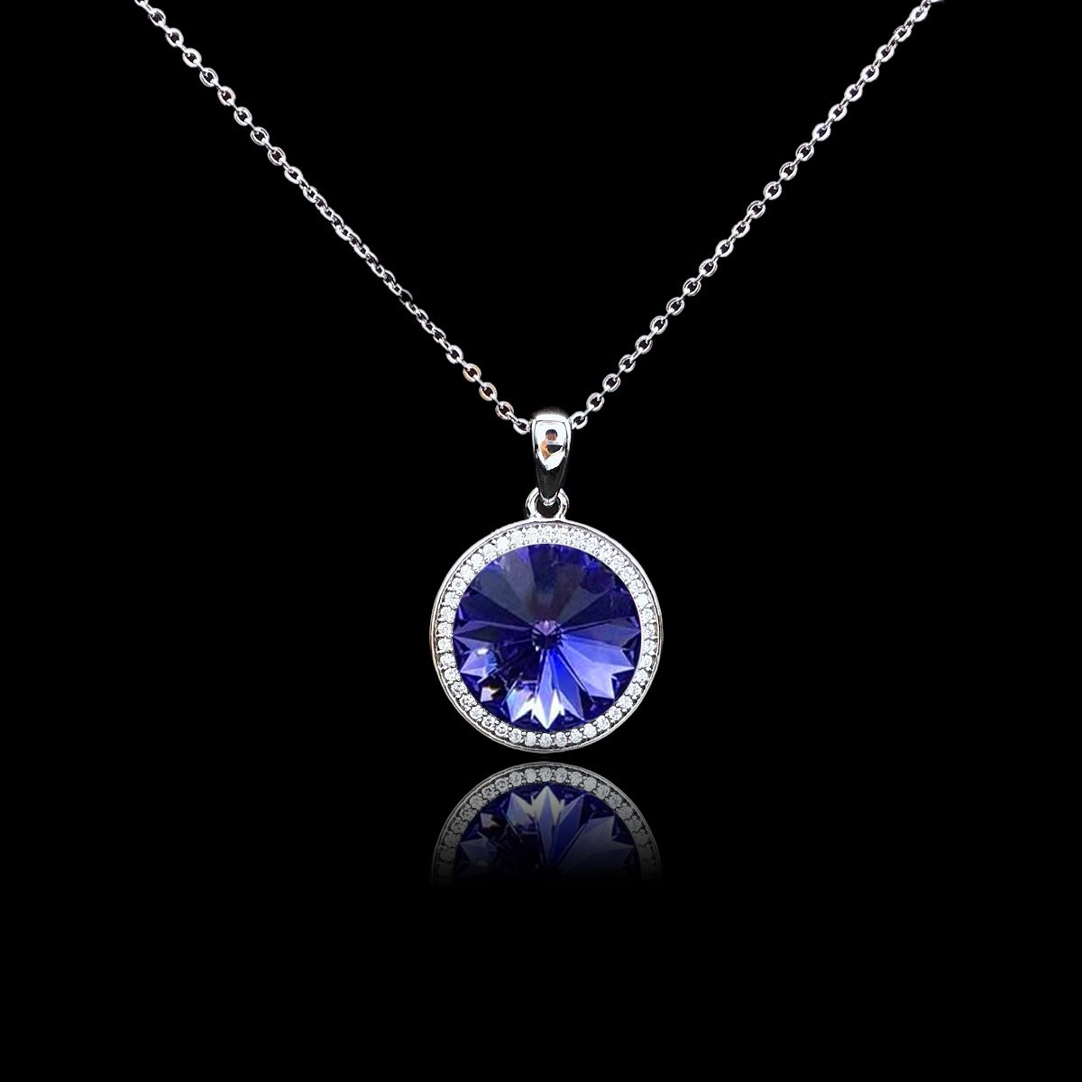 Our Swarovski element necklace wholesale features round stones on platinum-plated copper, offering a dazzling, luxurious accessory for daily wear, parties, and weddings. No MOQ, free shipping worldwide.