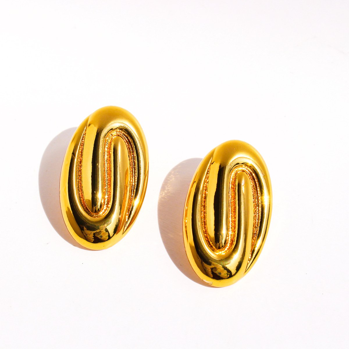 Wholesale Vintage Swirl Oval Drop Stud Earrings – 18K Gold