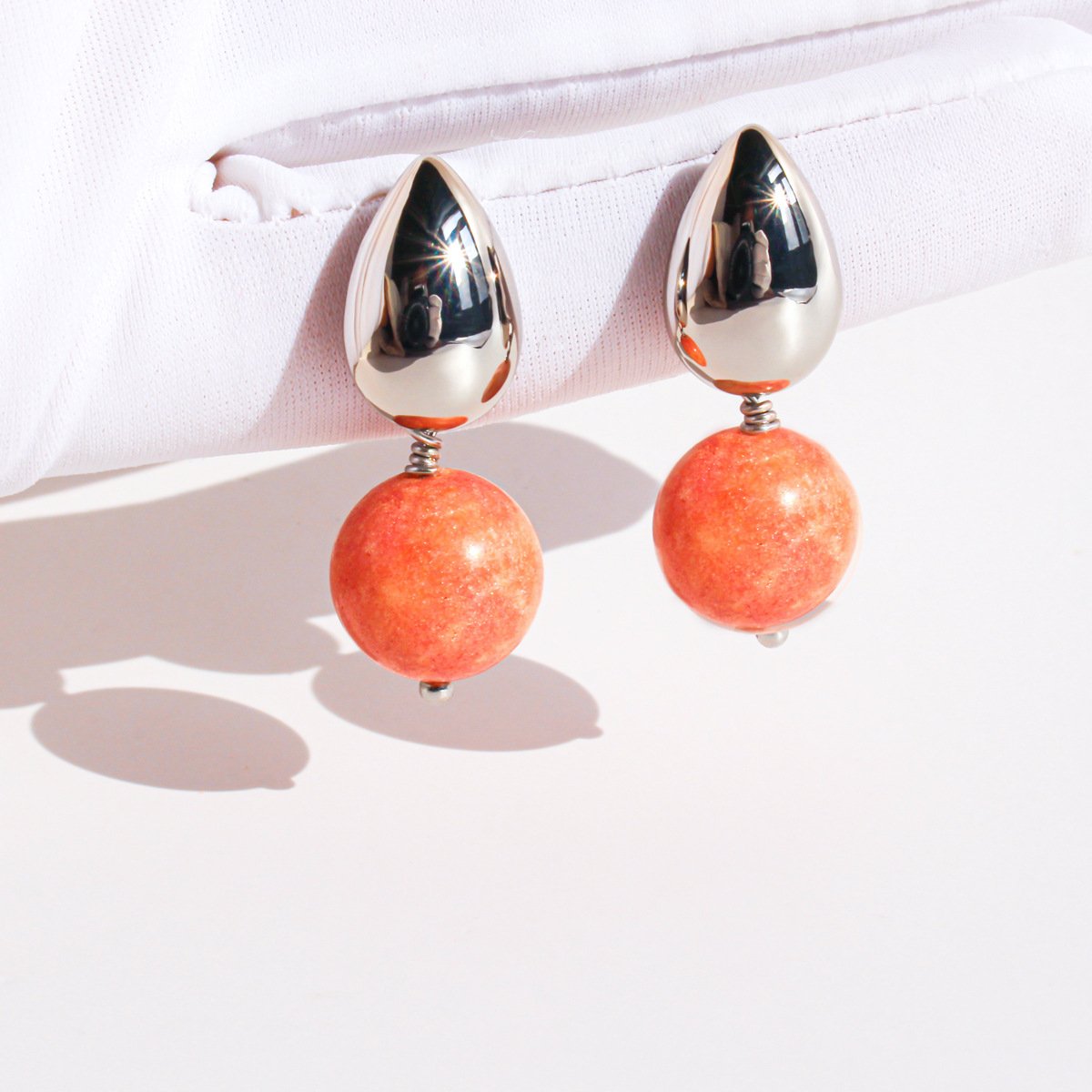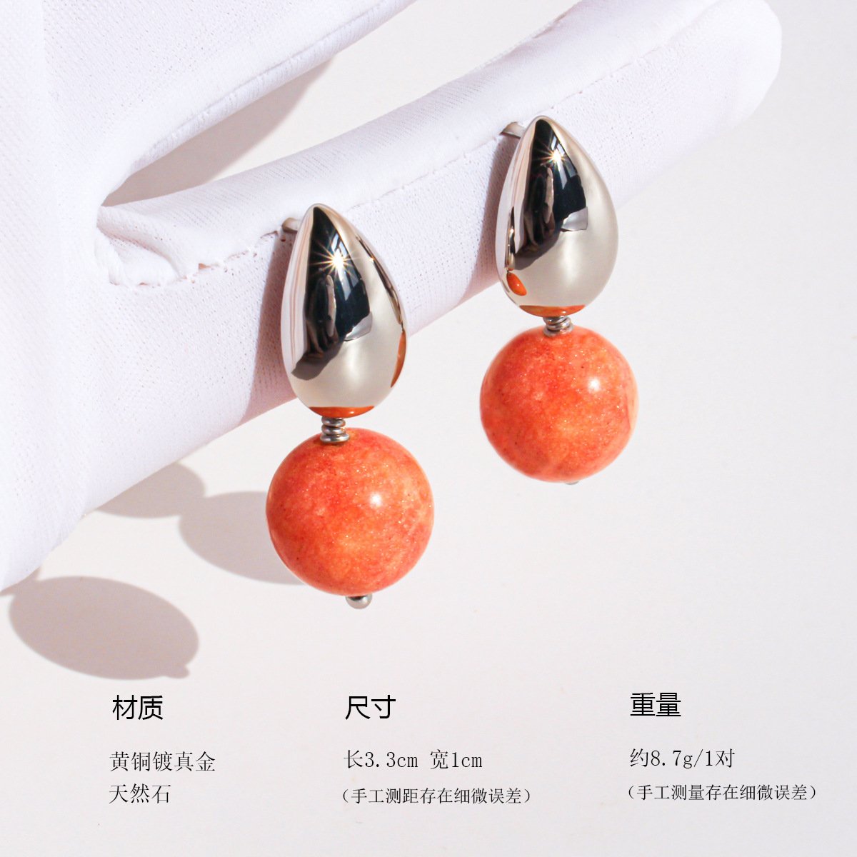 Discover unique premium natural red stone teardrop earrings, featuring copper bases with platinum plating, perfect for fashion-forward retailers.