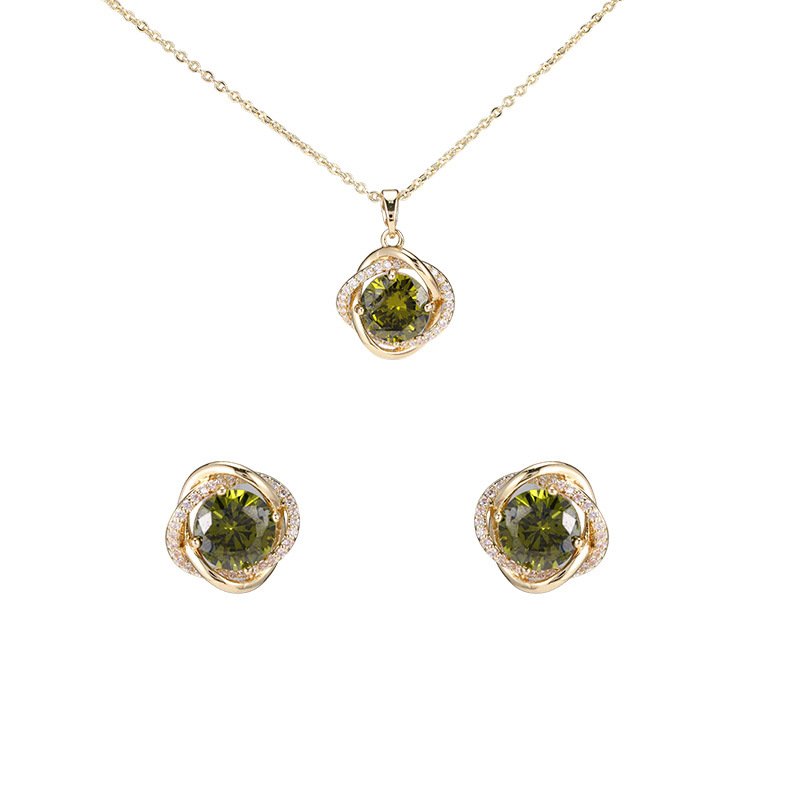 Add a touch of Parisian sophistication with our Vintage Green Jewelry Set Wholesale, featuring an elegant olive-green zircon pendant necklace paired with matching micro-pavé earrings. This refined jewelry set embodies French elegance and timeless charm, perfect for boutiques and luxury jewelry retailers.