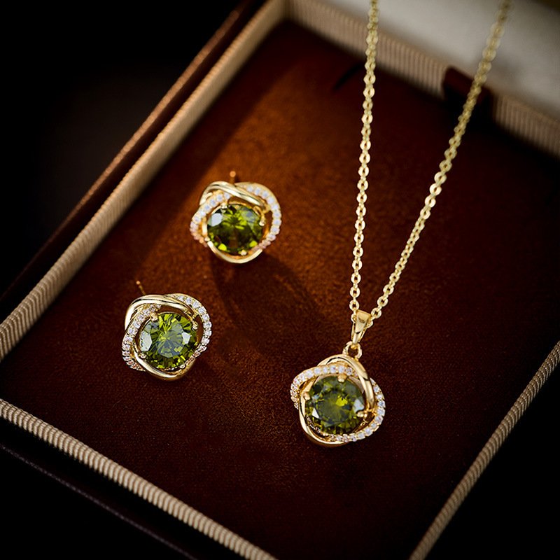 Vintage Green Jewelry Set Wholesale – 18K & White Gold Plated