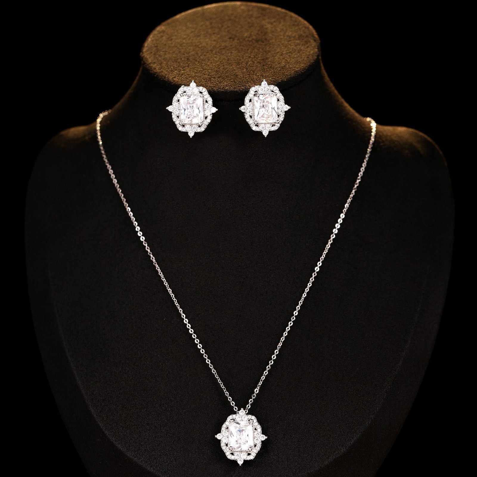 Elevate your bridal or evening look with this European-inspired White Zircon Jewelry Set, featuring a delicate necklace and matching earrings. Designed with high-quality white cubic zirconia and luxurious white gold plating, this jewelry set reflects modern elegance and timeless sophistication.
