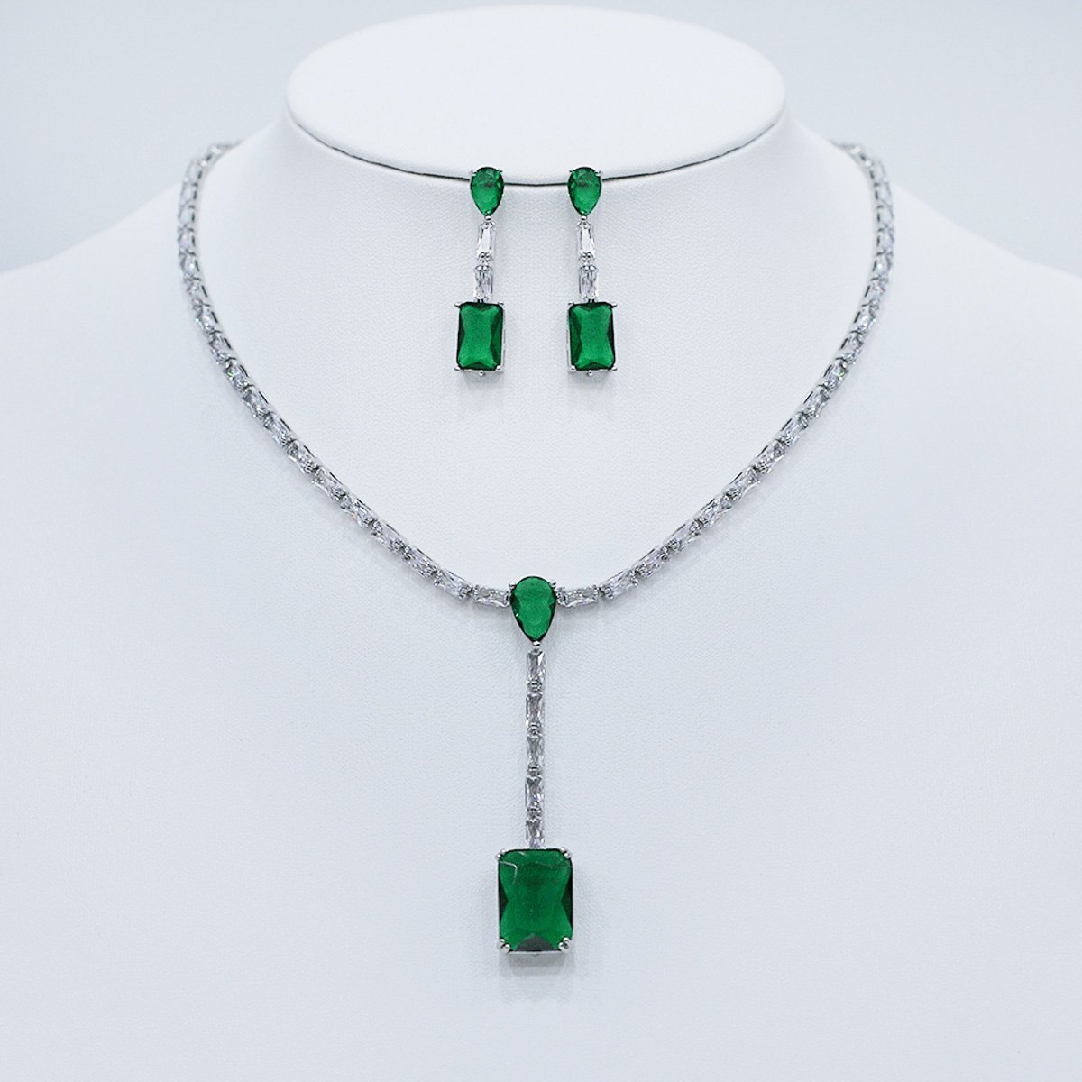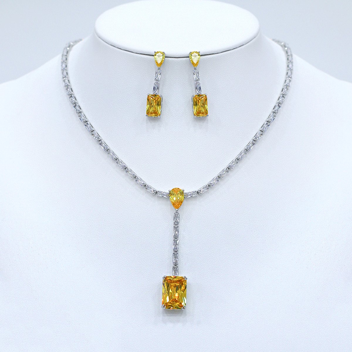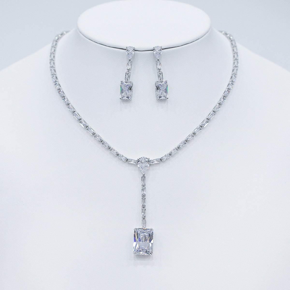 Present unique elegance with our wholesale baguette Y-drop set, meticulously crafted from high-quality copper and lustrously platinum-plated for enduring brilliance. This original and unique design features a striking Y-drop necklace with a dazzling rectangular stone, creating a sophisticated and modern look. Paired with matching rectangular drop earrings, this set is a perfect ensemble for any formal occasion, from red carpet events to elegant dinners. Ideal for boutiques, online jewelry stores, and cross-border eCommerce sellers, this set is a must-have for customers seeking high-quality, elegant accessories. Benefit from our competitive factory-direct pricing and enjoy free worldwide shipping, ensuring exceptional value and profitability for all your bulk purchases at JuneJewelry.com.