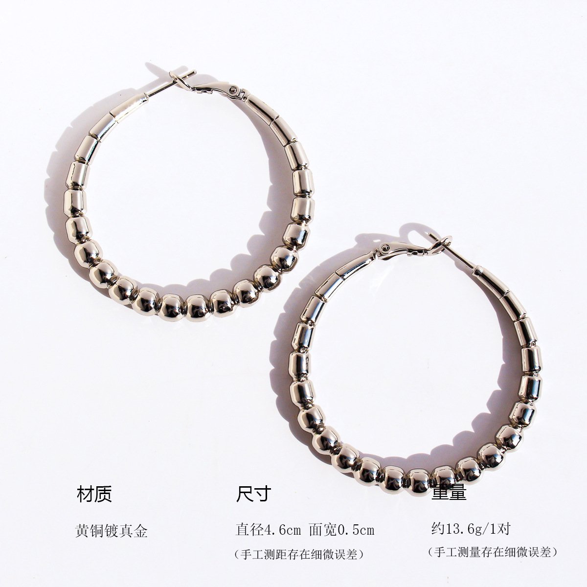 Elevate your inventory with our Wholesale Bead Hoop Earrings, featuring oversized copper hoops segmented like bamboo and accented with polished round beads for a bold, Hong Kong–inspired look. Crafted from durable copper and finished in premium 18K gold plating—also available in sleek platinum—to ensure lasting shine and quality at factory-direct prices . These statement circle earrings, available in exaggerated 50 mm diameters, cater to cross-border trends and everyday styling alike . Offered with free shipping on all bulk orders, they deliver exceptional value and margin expansion for fashion jewelry wholesalers on junejewelry.com