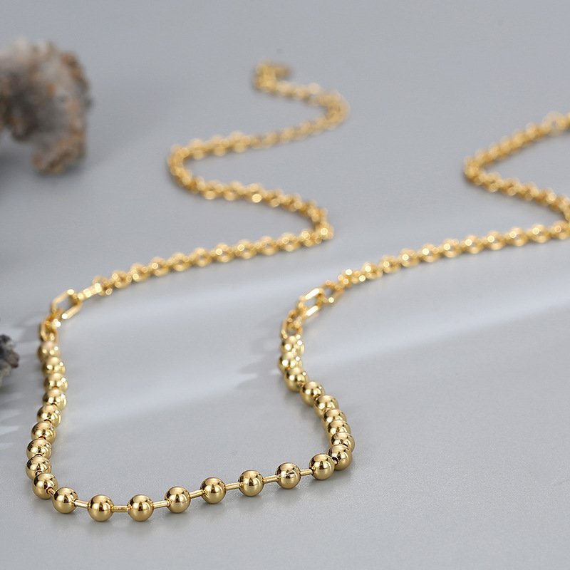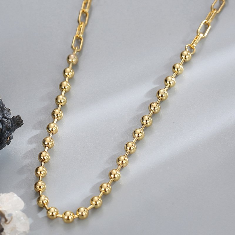 Discover understated elegance with our Wholesale Beaded Choker Necklace, a refined piece designed for modern fashion retailers and jewelry resellers. This minimalist yet eye-catching necklace features evenly spaced small gold-tone beads on a fine chain, exuding quiet luxury and versatile charm. Crafted from high-quality copper and electroplated with real 18K gold, it’s ideal for layering or wearing solo. Perfect for boutiques, fashion platforms, and cross-border B2B shops seeking trendy yet timeless stock at factory-direct prices. All orders come with free global shipping, ensuring high value and easy resale for wholesale customers at JuneJewelry.com.
