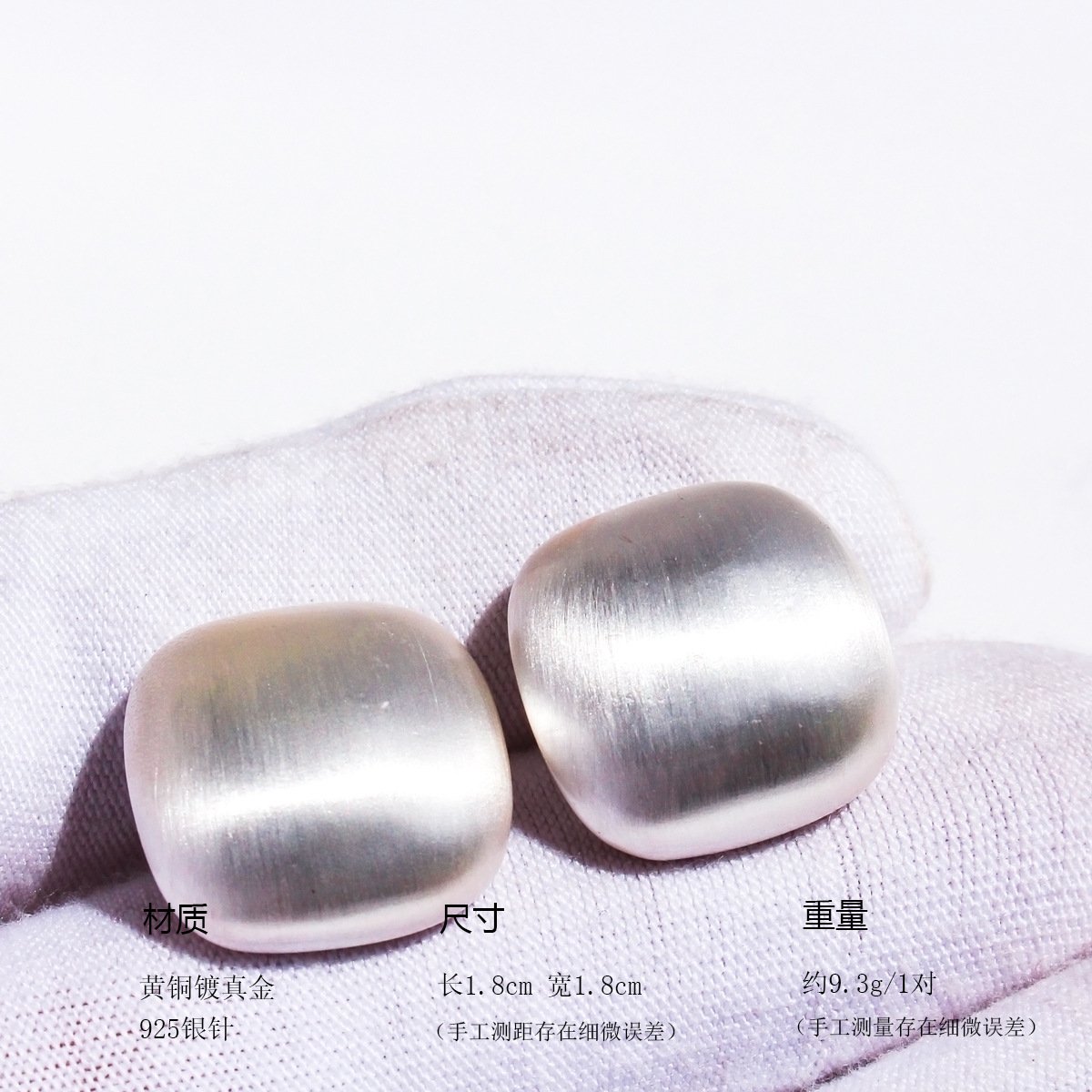 Brushed Metal Square Stud Earrings – 18K Gold & Platinum