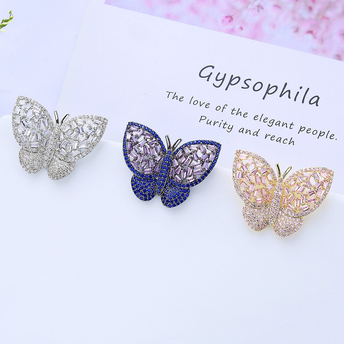 Attract customers with our Wholesale Butterfly Stud Earrings—we designed them to be truly unique and delicate. These intricate studs showcase a beautiful butterfly shape, with wings crafted from sparkling baguette and micro-pavé cubic zirconia stones. Our detailed craftsmanship creates a dazzling effect that blends femininity and elegance.