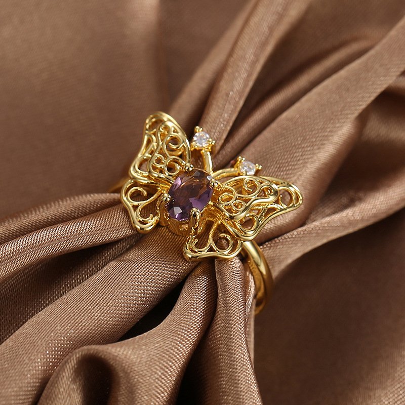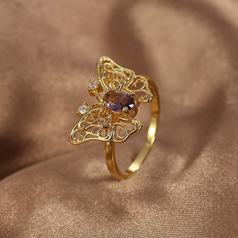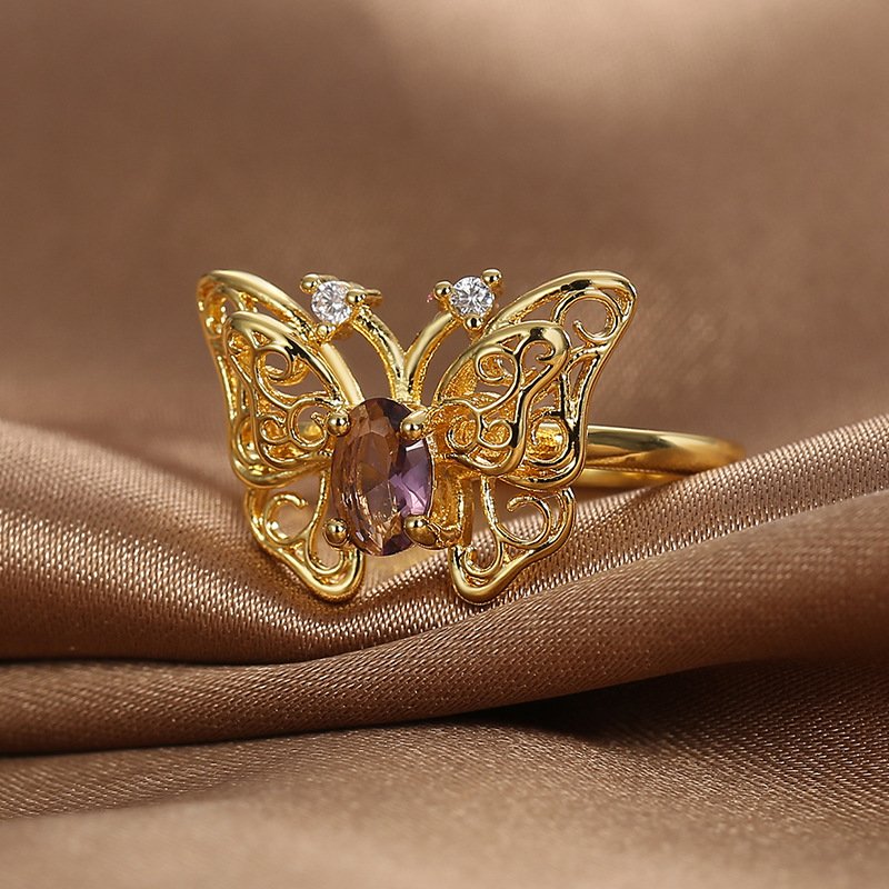 Home Rings Everyday Ring Wholesale Butterfly Zircon Ring – 18K Gold Plated Brass