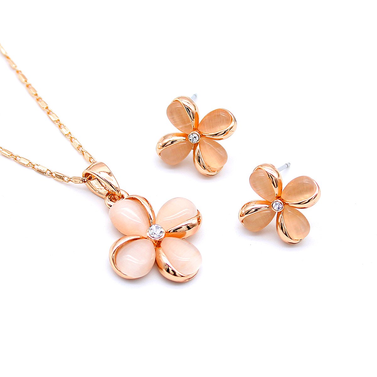 Wholesale Cat Eye Flower Jewelry Set – Rose Gold Plated