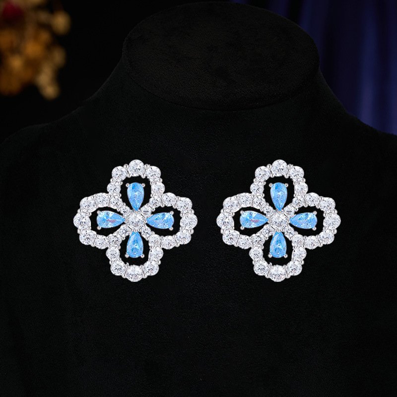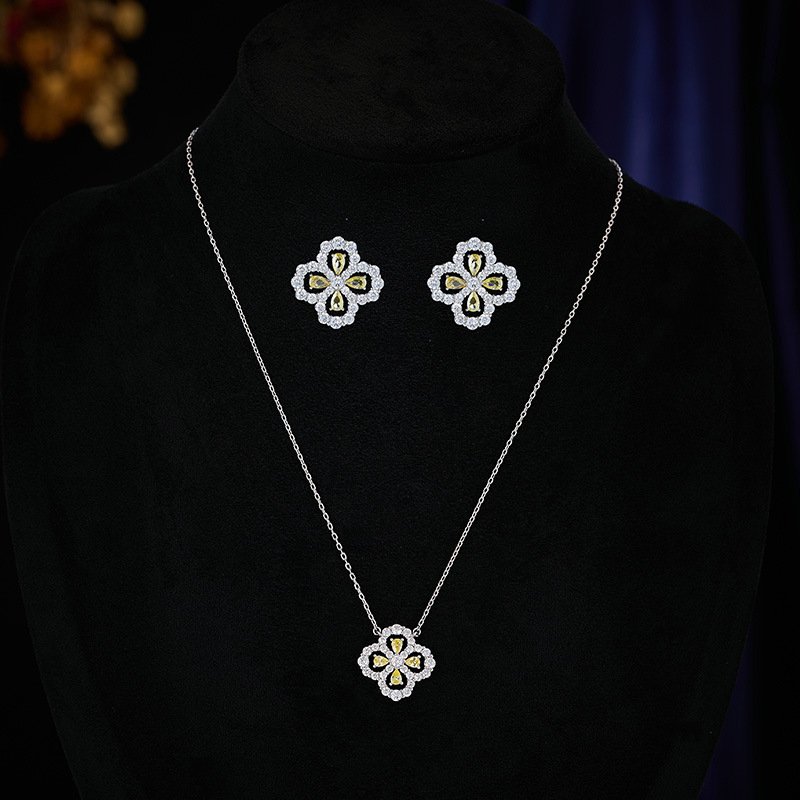 Wholesale Clover Zircon Jewelry Set– earrings and necklace