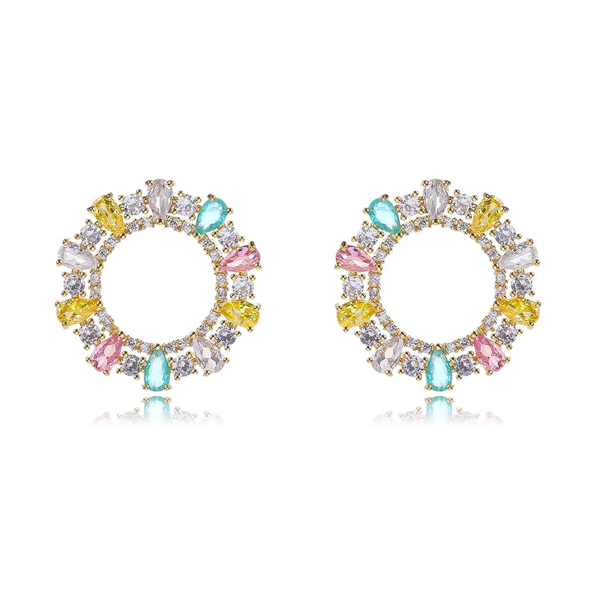 Wholesale Colorful Cluster Stud Earrings – Gold Plated