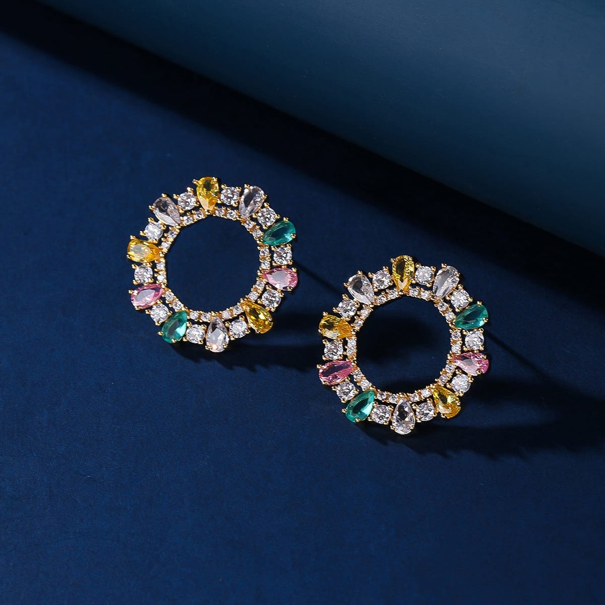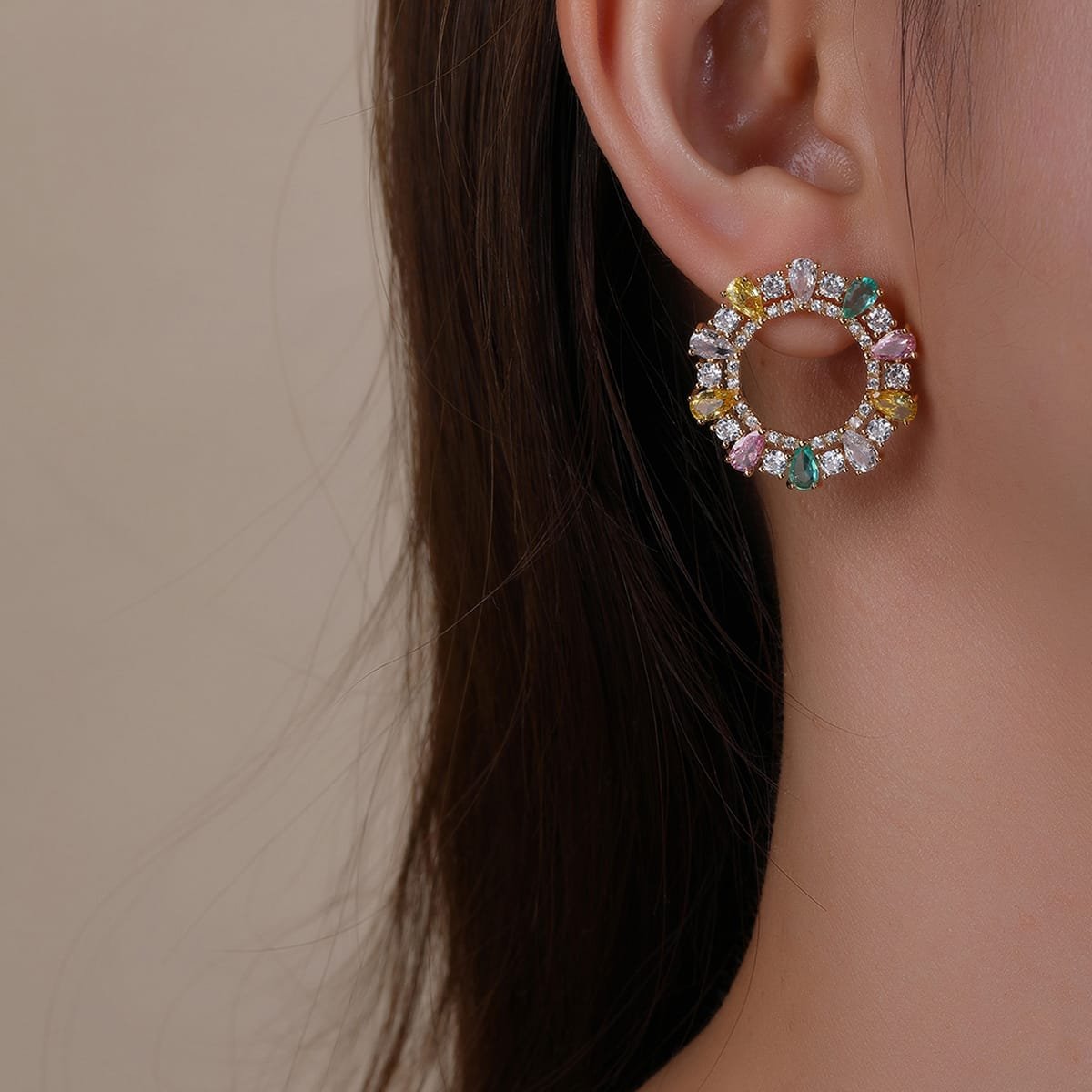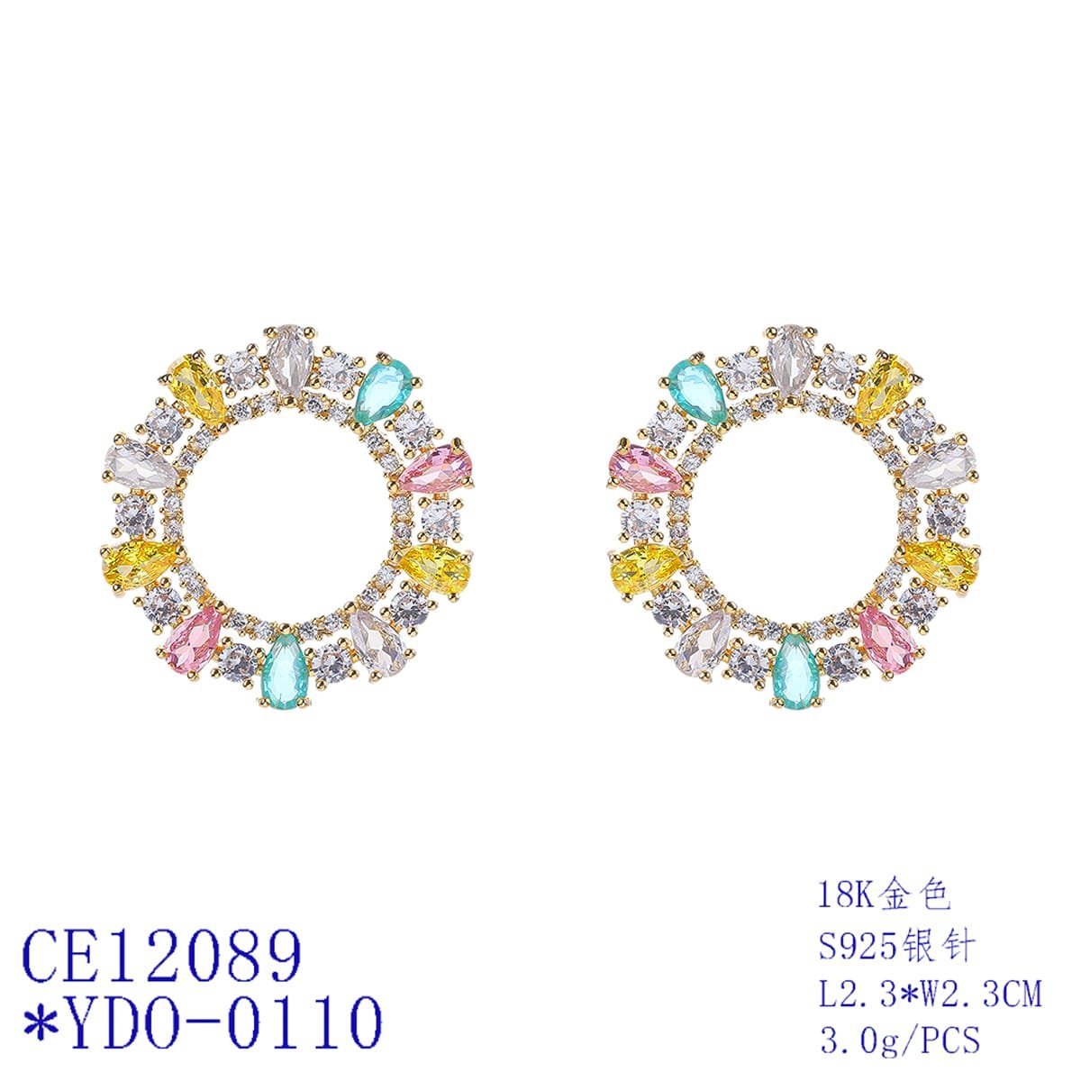 Discover our stunning copper earrings featuring colorful zircon stones. Perfect for any occasion, these high-end pieces come with durable S925 silver needles. Ideal for wholesale purchases!