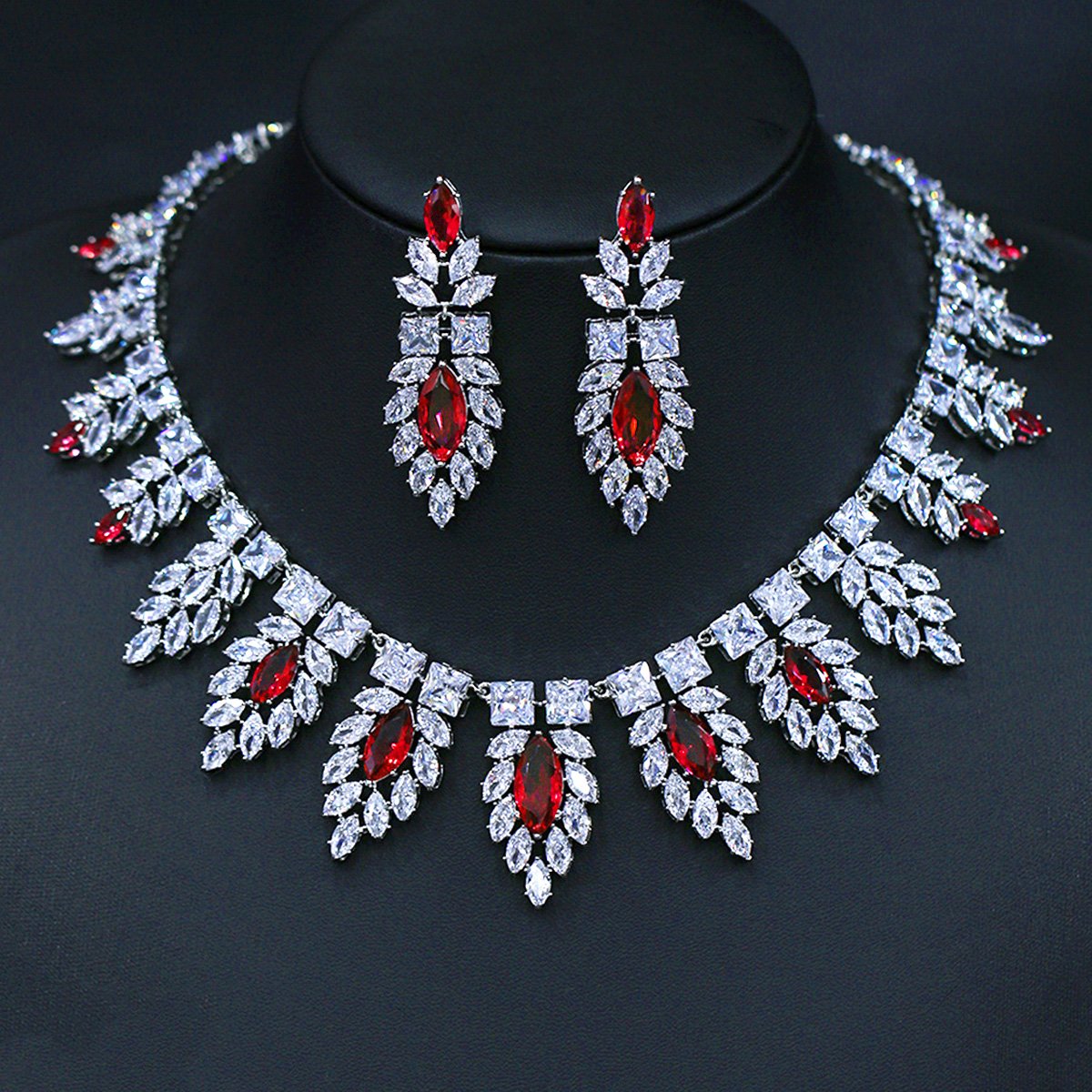 Elevate your accessory offerings with our dazzling Wholesale Colorful CZ Wedding Jewelry Set, a captivating blend of vibrant hues and brilliant sparkle. This exquisite set features a statement necklace and matching dangling earrings, both intricately designed with an array of shimmering cubic zirconia stones in stunning colors like green, red, and blue. Crafted from high-quality copper and finished with a luxurious platinum plating, this original and unique design delivers a premium, eye-catching look and feel at an incredibly cheap factory price. Perfect for fashion boutiques, online jewelry stores, and cross-border eCommerce sellers seeking high-quality, high-demand pieces. Benefit from our factory-direct pricing and enjoy convenient free worldwide shipping, ensuring unbeatable value and profitability for bulk buyers at JuneJewelry.com.