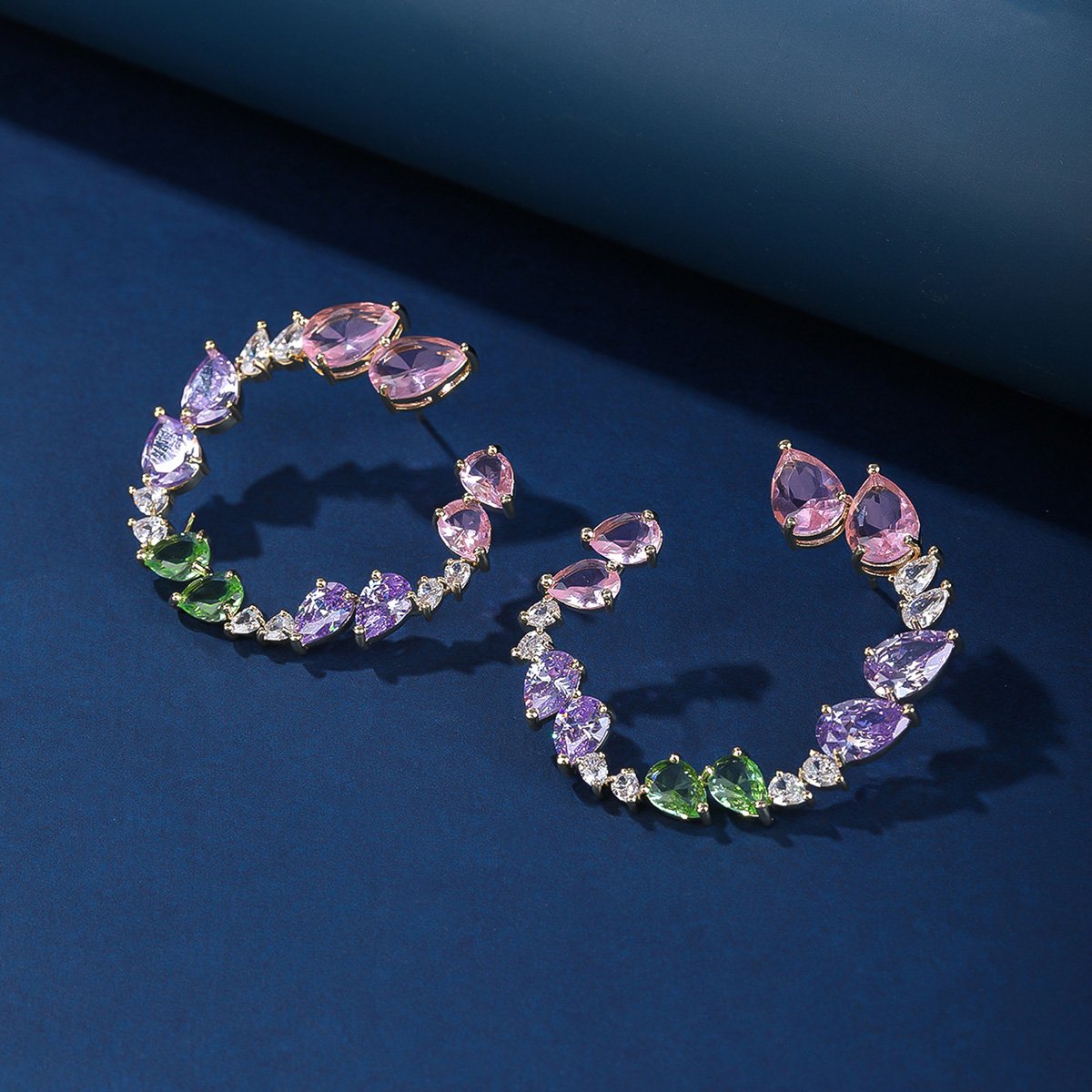 Discover our stunning copper earrings featuring colorful zircon stones. Perfect for any occasion, these high-end pieces come with durable S925 silver needles. Ideal for wholesale purchases!