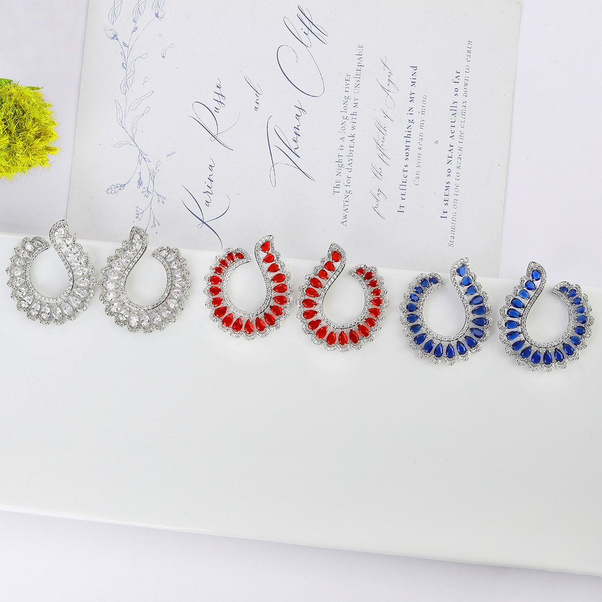 Discover our stunning copper earrings featuring colorful zircon stones. Perfect for any occasion, these high-end pieces come with durable S925 silver needles. Ideal for wholesale purchases!