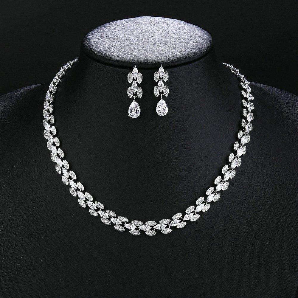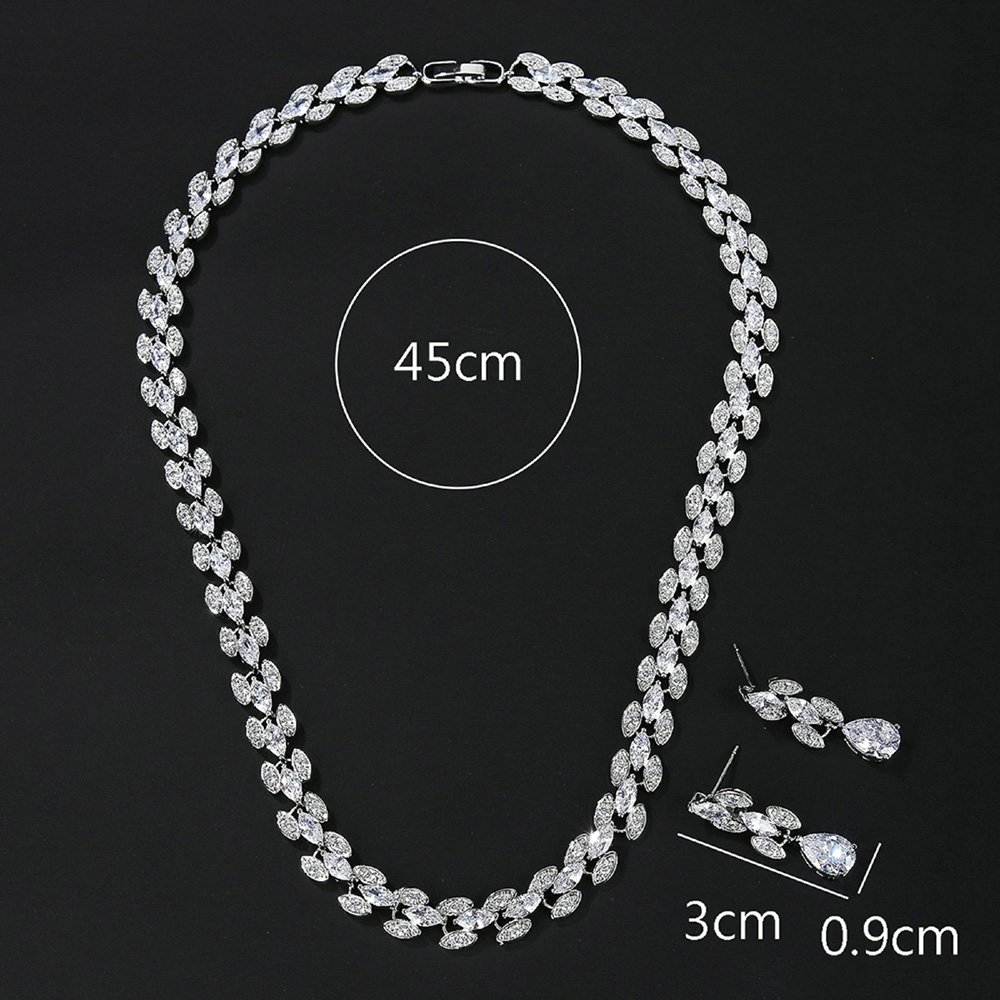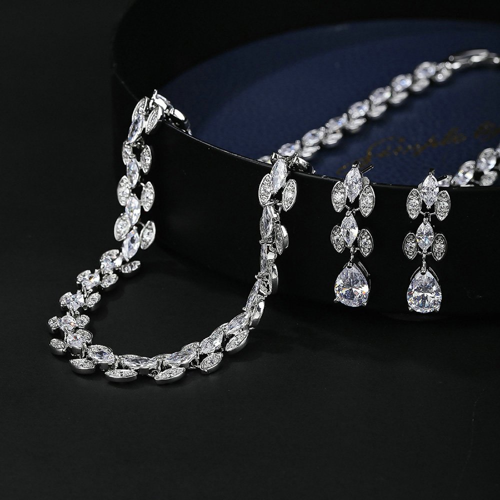 Our designers create unique styles that combine classic elegance with contemporary fashion trends. This Wholesale Copper Zircon Set boasts intricate floral and geometric motifs for a distinctive look. These original patterns help your shop stand out from common retail competitors easily. The set includes a matching necklace and earrings to provide a complete accessory solution. We focus on details that appeal to brides and gala guests specifically. Each stone is securely set to maintain brilliance and prevent loss during wear. Your inventory will benefit from such high-quality and distinctive craftsmanship daily. We provide versatile pieces that fit any formal occasion.