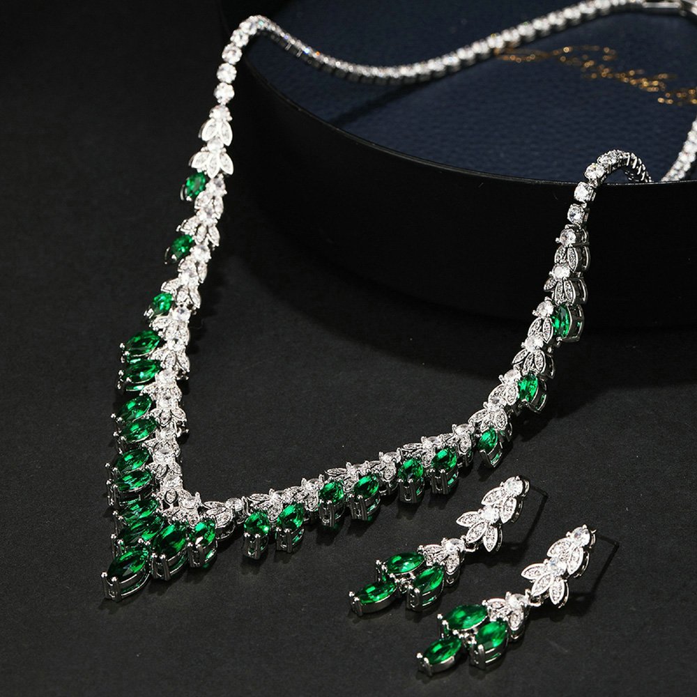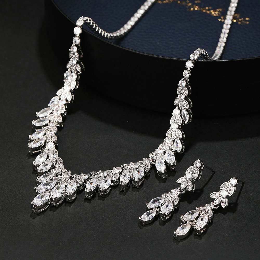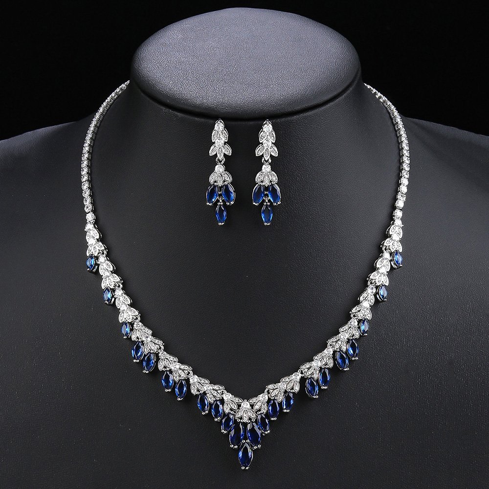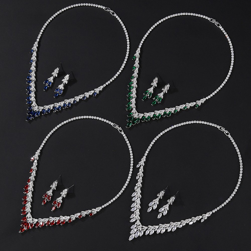 Retailers choose our products because we provide original designs that stand out in a crowded jewelry marketplace. This jewelry set transitions perfectly from daytime elegance to formal evening glamour for any sophisticated social event. We use eco-friendly copper material to ensure skin comfort while maintaining a high level of durable structural integrity. The marquise and pear-cut zircons offer a diamond-like fire that instantly captures the attention of every onlooker. You can confidently market these unique sets as the centerpiece of your wedding or gala accessory collection.