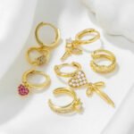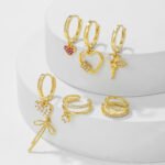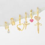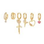wholesale CZ heart angel clip drop huggie earrings set jewelry