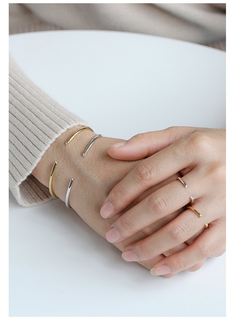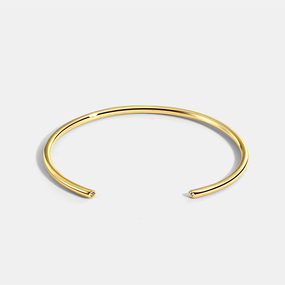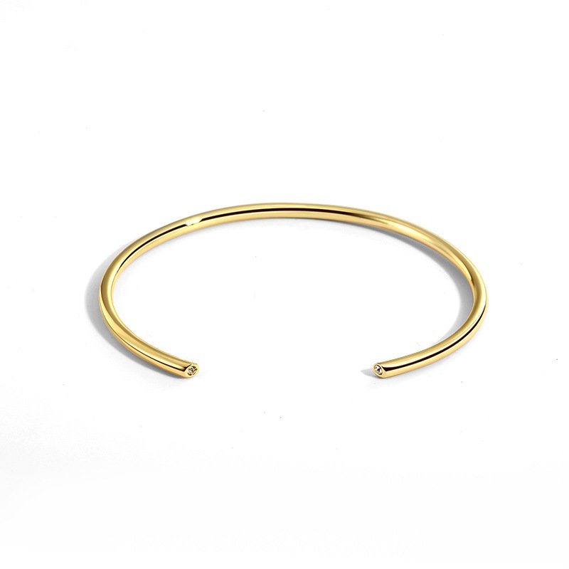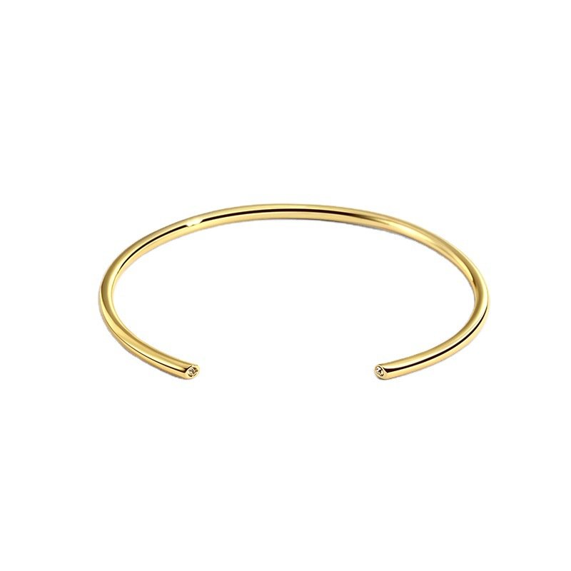 Discover our Wholesale CZ Open Cuff Bangle, a minimalist and stylish accessory. This 14K gold plated or platinum plated brass open cuff bracelet features subtle diamond accents and is adjustable. Shop wholesale diamond open cuff bracelets with free shipping at junejewelry.com!