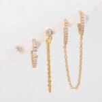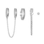 wholesale CZ round cool tassel drop huggie earrings set