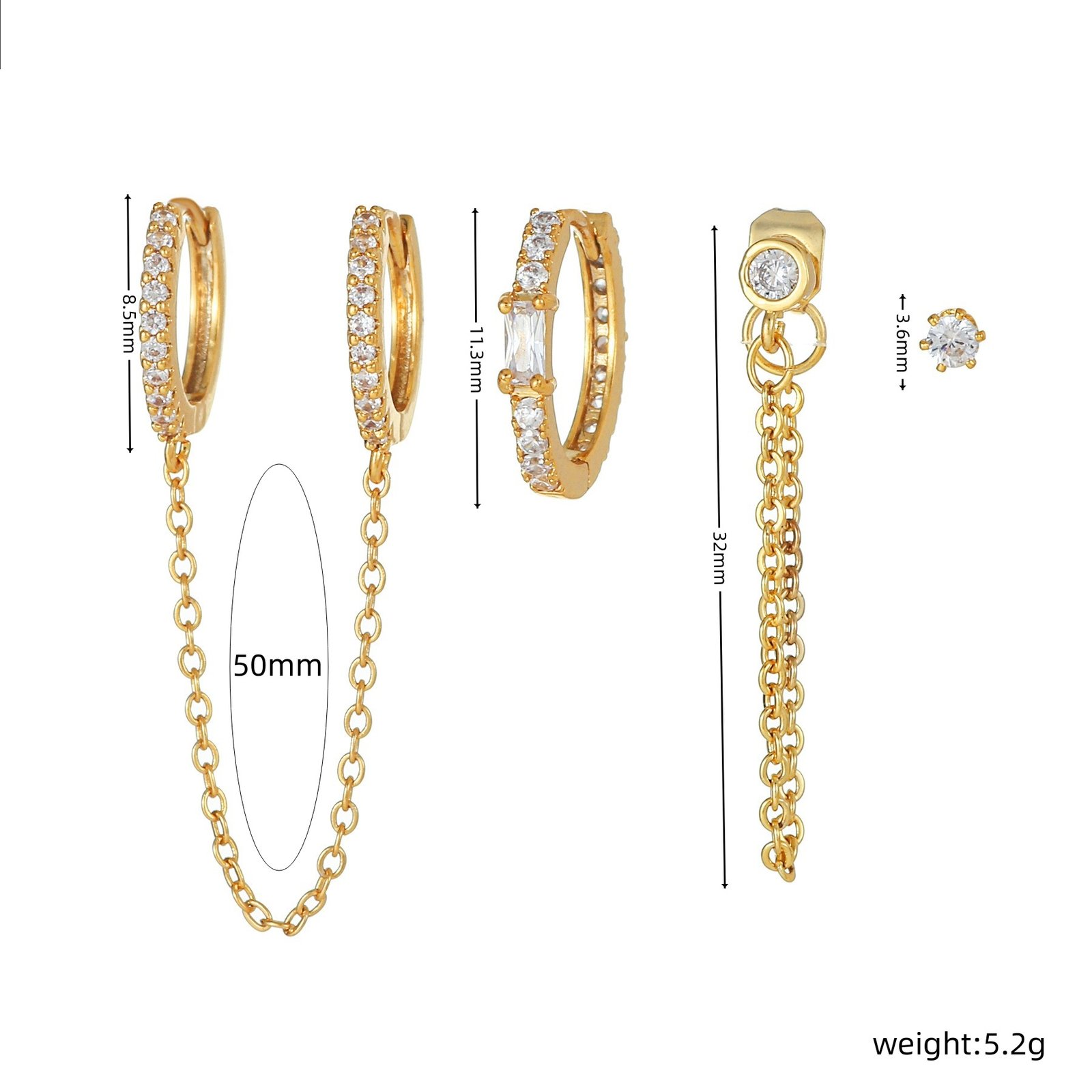 wholesale CZ round cool tassel drop huggie earrings set