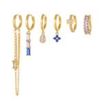 wholesale CZ tassel round geometry drop huggie earrings set jewelry