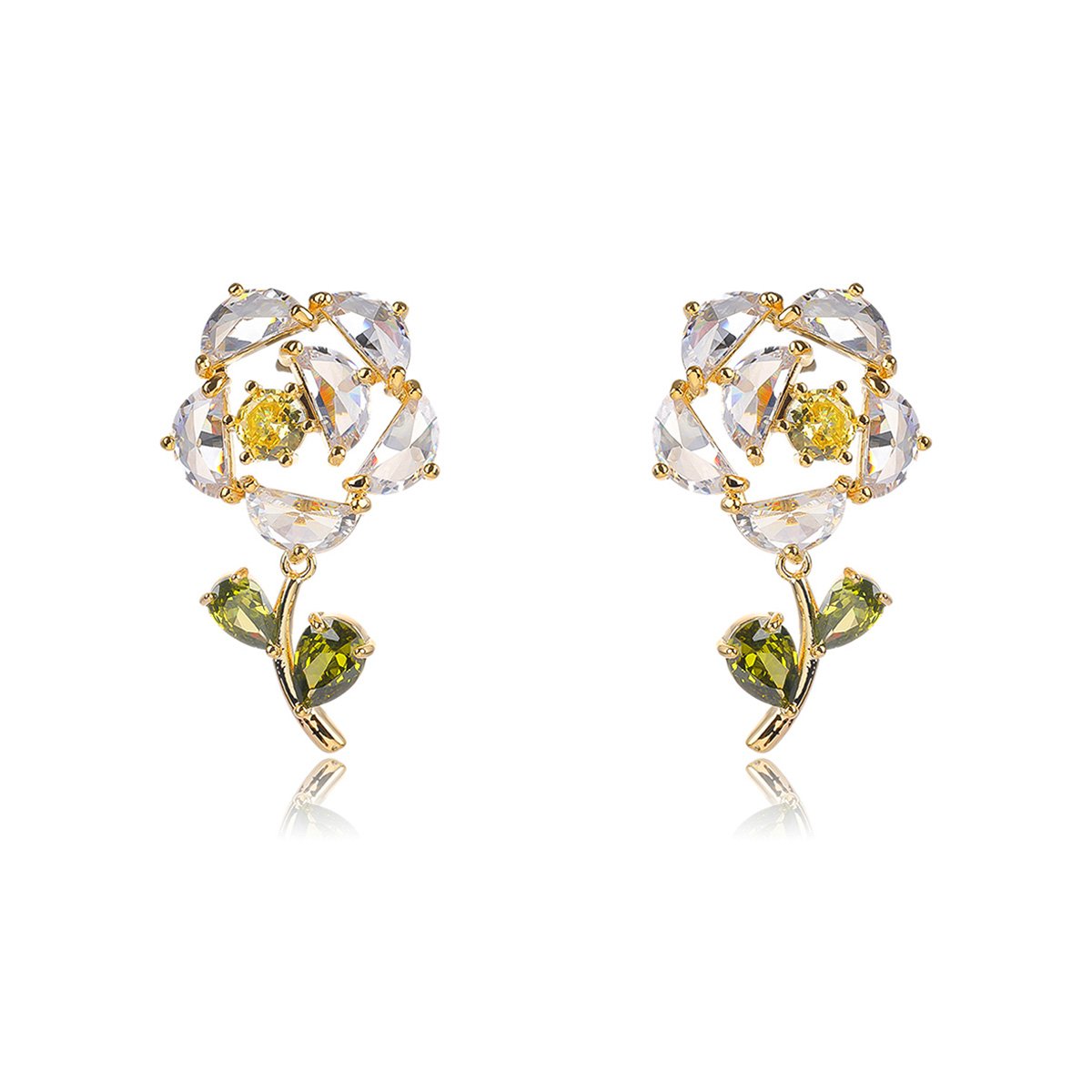 Wholesale Dangle Flower Stud Earrings – Gold Plated