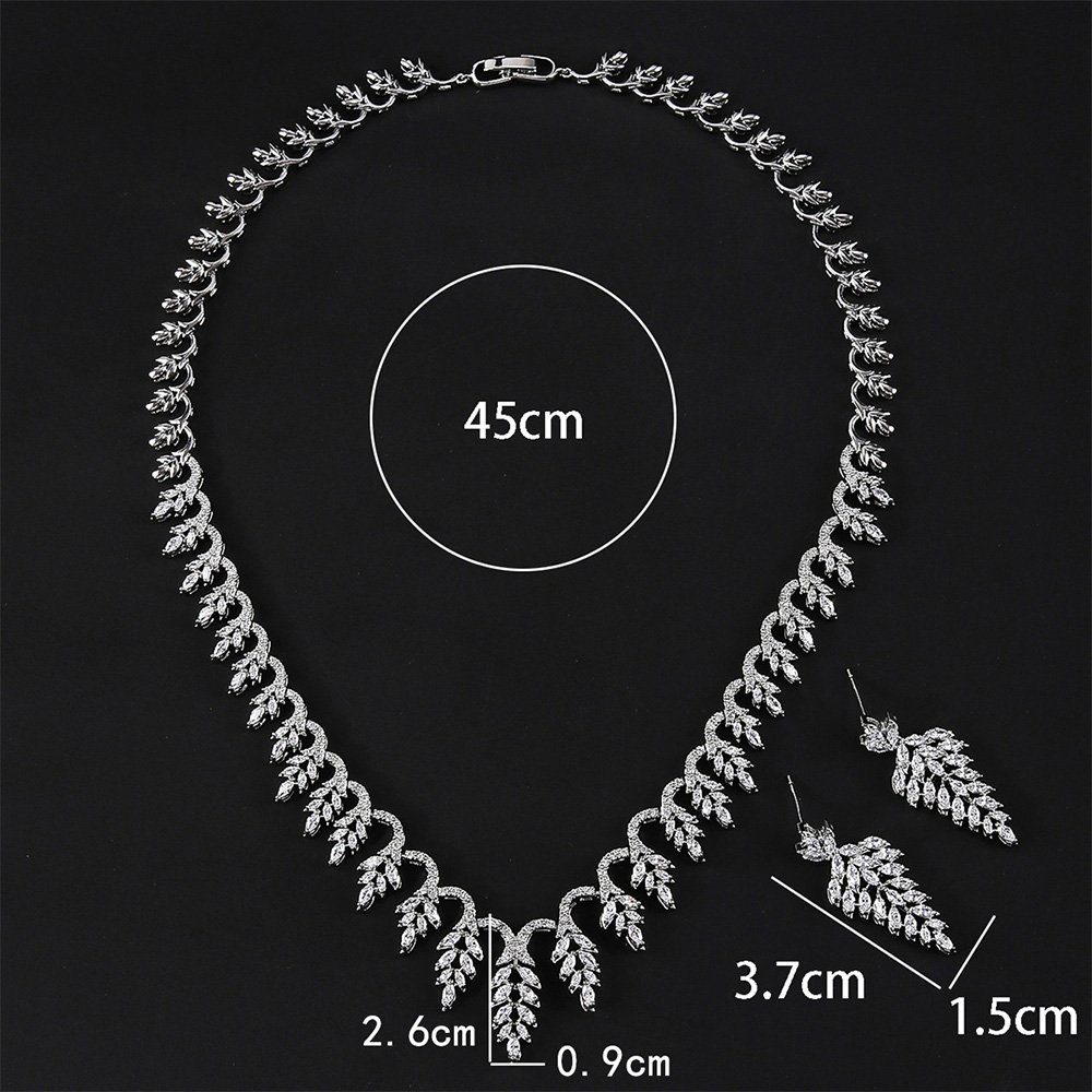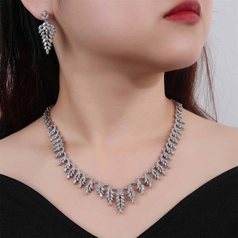 Wholesale elegant zircon set with leaf pattern and real gold plating on copper from JuneJewelry.com – premium bridal jewelry for bulk buyers.