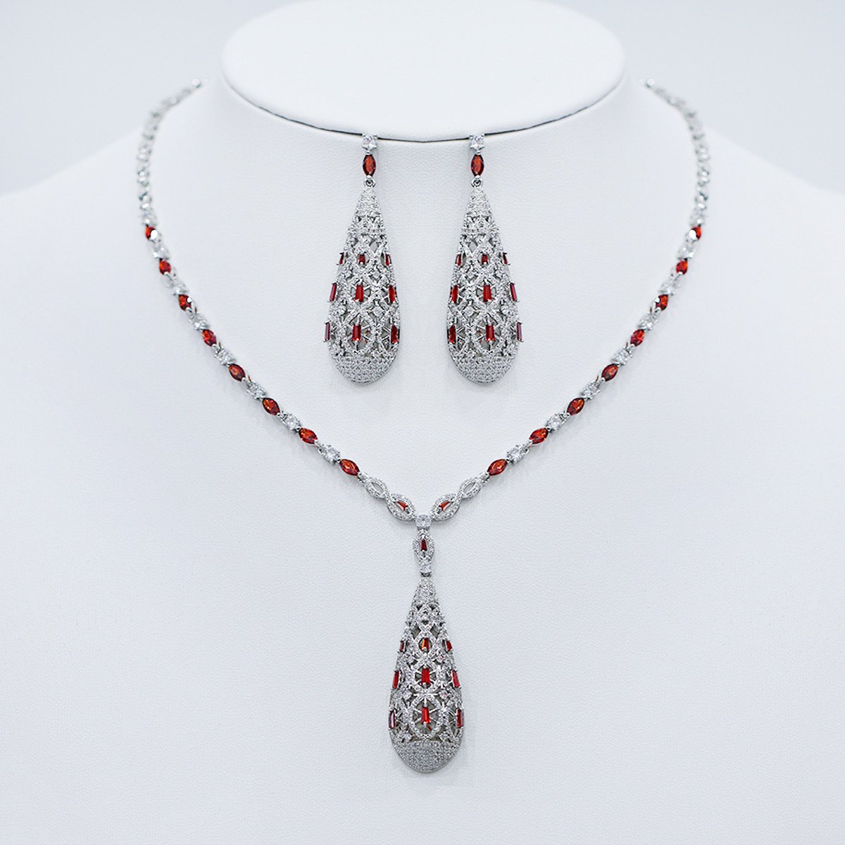 Present unique elegance with our wholesale filigree teardrop set, meticulously crafted from high-quality copper and lustrously platinum-plated for enduring brilliance. This original and unique design features an intricate, lacy filigree pattern in a stunning teardrop shape, creating a delicate and luxurious aesthetic. The set includes a beautiful necklace with a matching filigree drop and coordinated drop earrings, making it a perfect ensemble for any formal occasion. Ideal for boutiques, online jewelry stores, and cross-border eCommerce sellers, this set is a must-have for customers seeking high-quality, elegant accessories. Benefit from our competitive factory-direct pricing and enjoy free worldwide shipping, ensuring exceptional value and profitability for all your bulk purchases at JuneJewelry.com.
