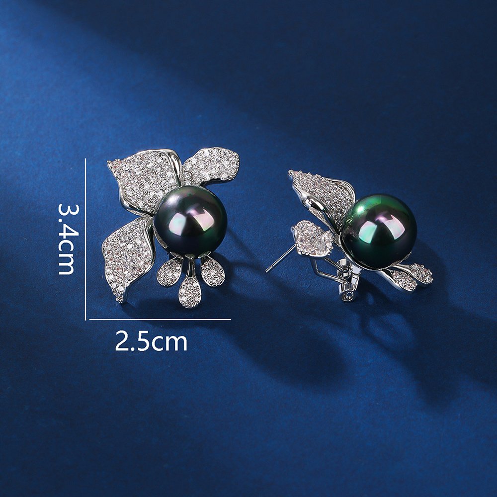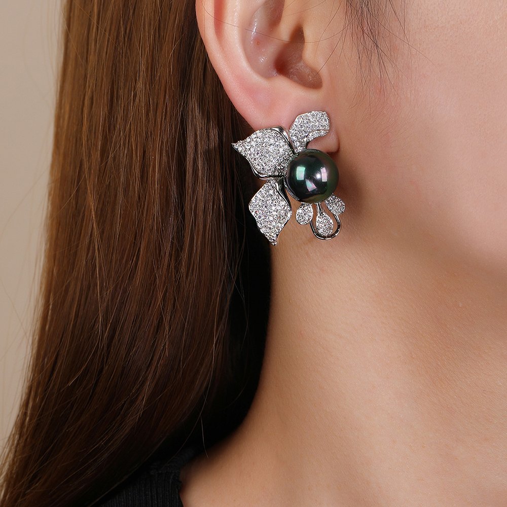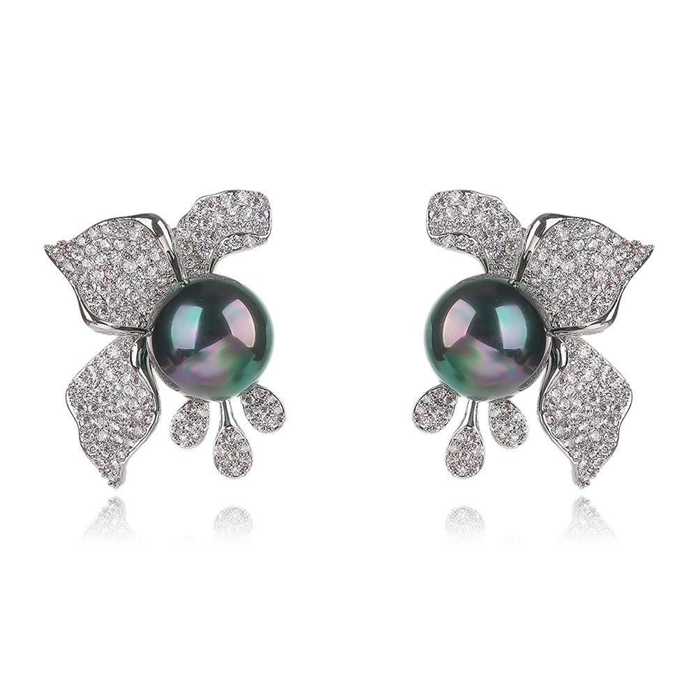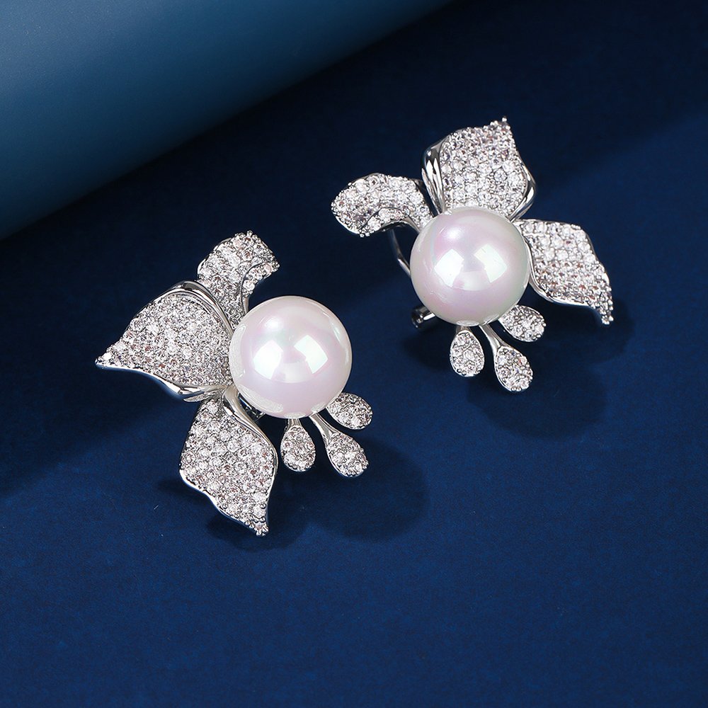 These Wholesale Floral Pearl Earrings showcase a stunning arrangement of shimmering cubic zirconia stones that form delicate blooming petals. We have carefully placed a large, high-luster shell pearl at the base of each flower to create balance. The brilliant zircon accents catch the light beautifully, providing the high-end look of real diamonds at cheap factory prices.