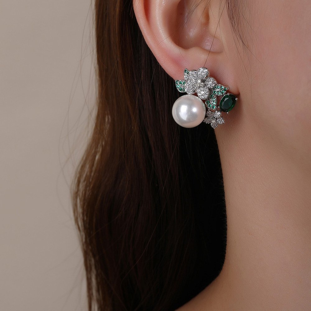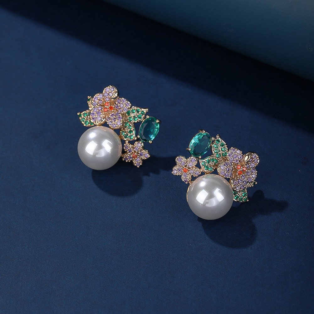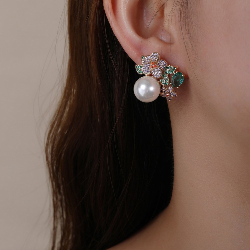 Wholesale Floral Pearl Earrings – Luxury Zircon Crystal Studs