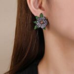 Boutique owners and online sellers can purchase these wholesale floral zircon earrings at cheap factory prices for maximum profitability. We offer a wide variety of styles, including roses with green enamel leaves and shimmering multi-petal blossom designs. These statement pieces are ideal for bridal showers, evening parties, or upscale retail collections in competitive fashion markets.